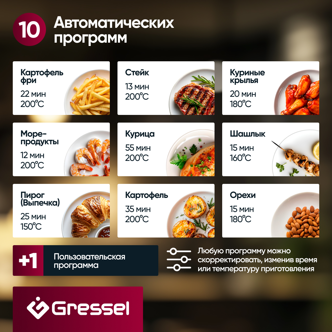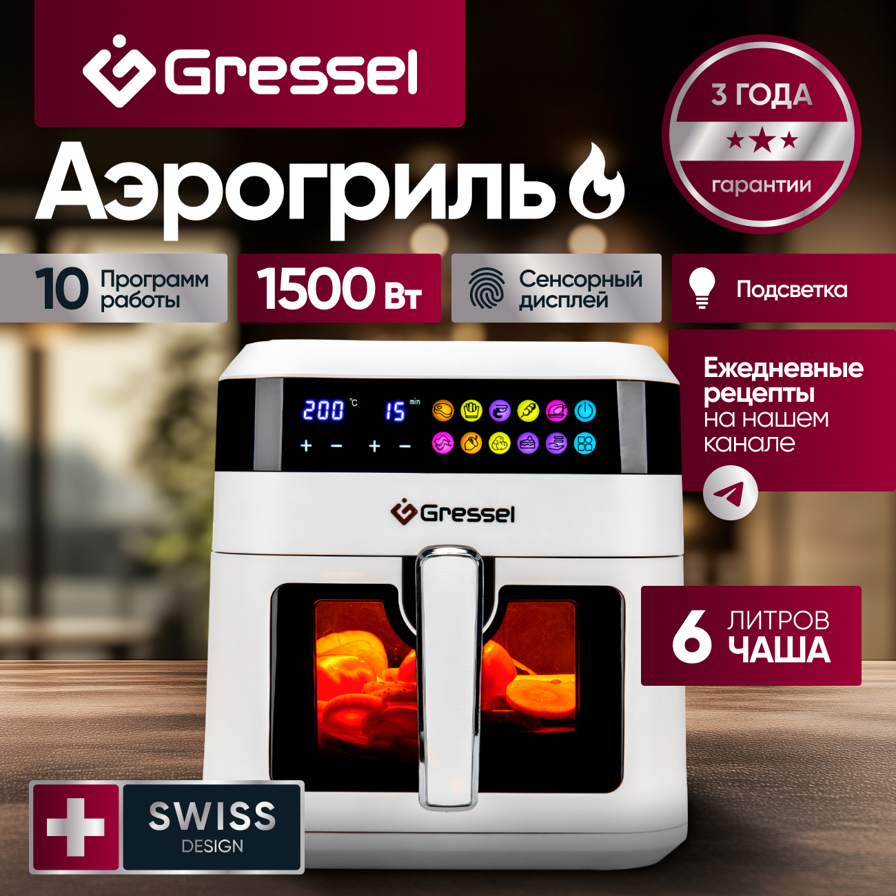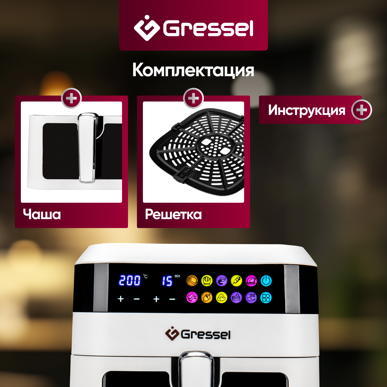 Аэрогриль Gressel GAF-1824, 10 программ, сенсорный дисплей, подсветка, чаша 6л.