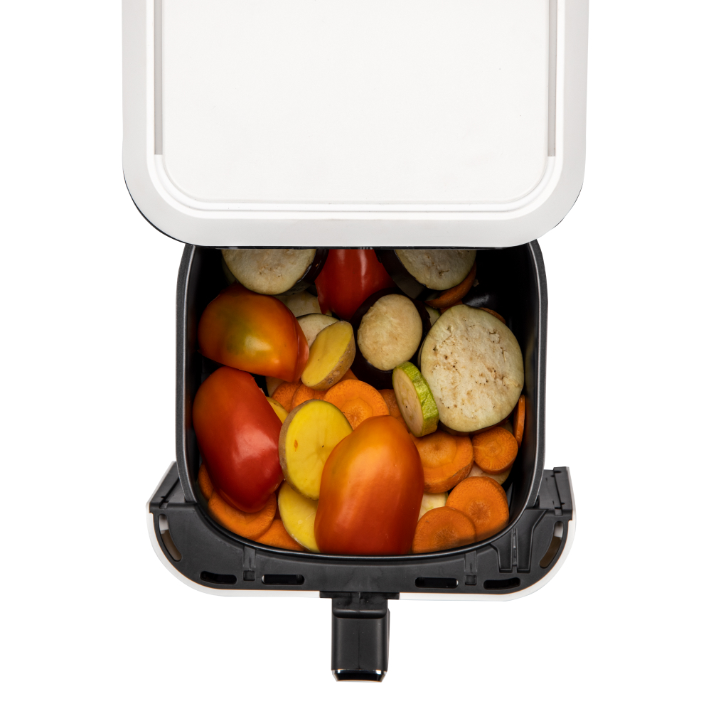 Аэрогриль Gressel GAF-1824 — идеальное решение для тех, кто стремится разнообразить свой рацион и готовить полезные блюда без лишнего масла. Модель отличается лаконичным дизайном и вместительной чашей объёмом 6 литров, что позволяет без труда готовить как небольшие порции, так и полноценные блюда для всей семьи. Мощность 1500 Вт обеспечивает быстрый и равномерный нагрев, а сенсорный дисплей с 10 автоматическими программами упрощает выбор оптимального режима. Кроме привычных пресетов для стейков, картофеля фри, курицы или морепродуктов, в приборе предусмотрена дополнительная пользовательская программа, которую можно настраивать самостоятельно, подбирая время и температуру в диапазоне от 80° до 200°.