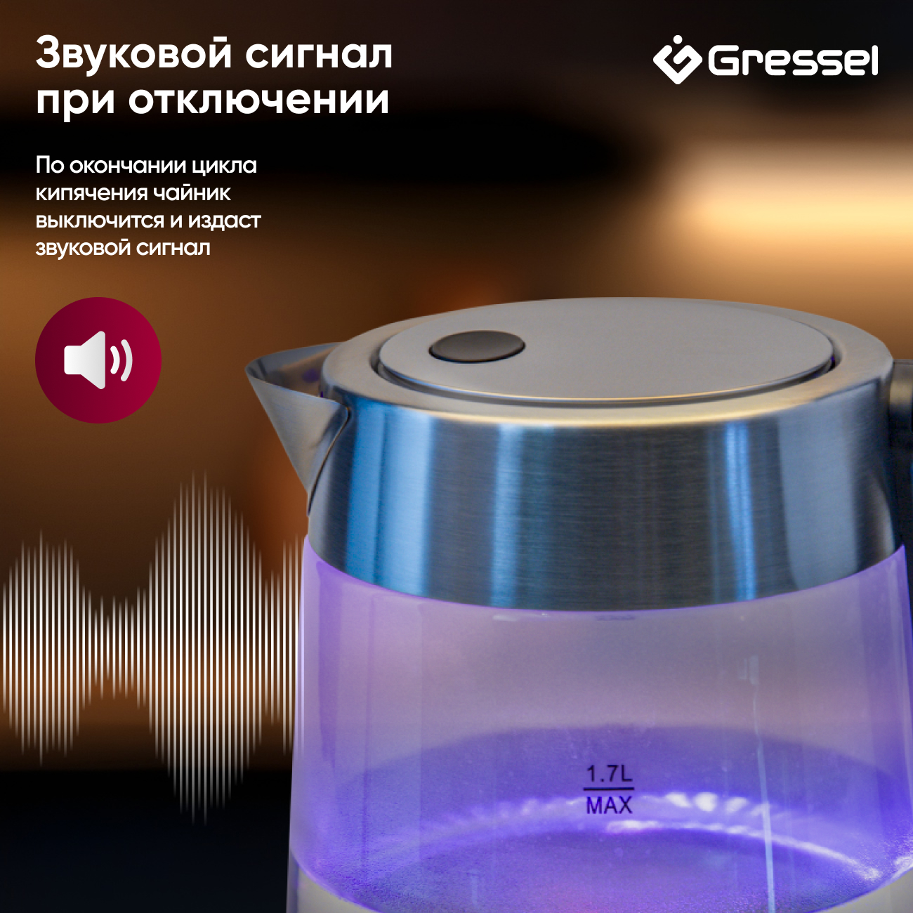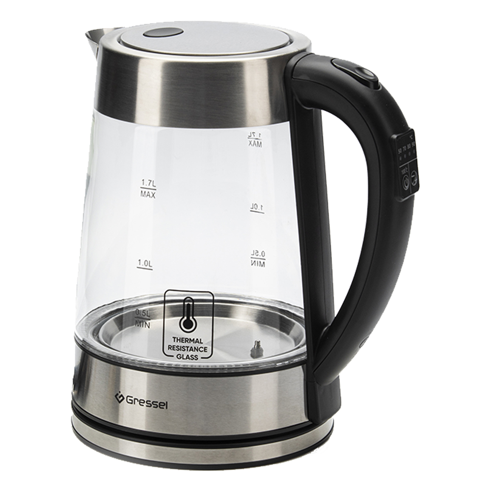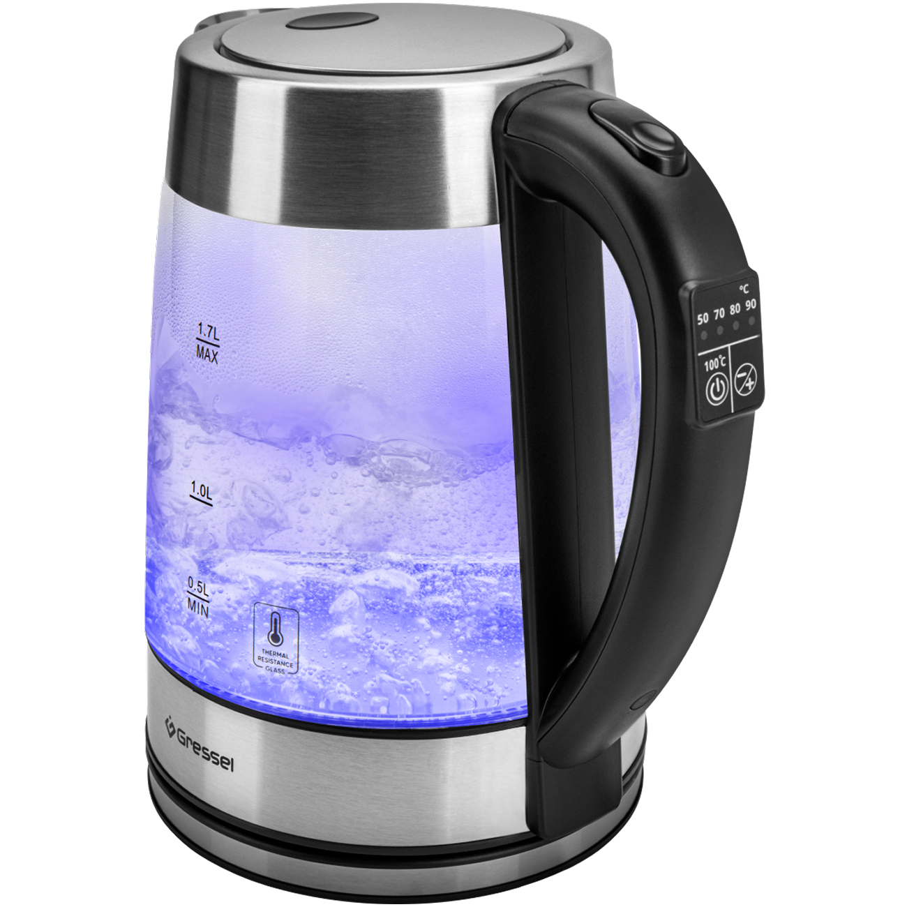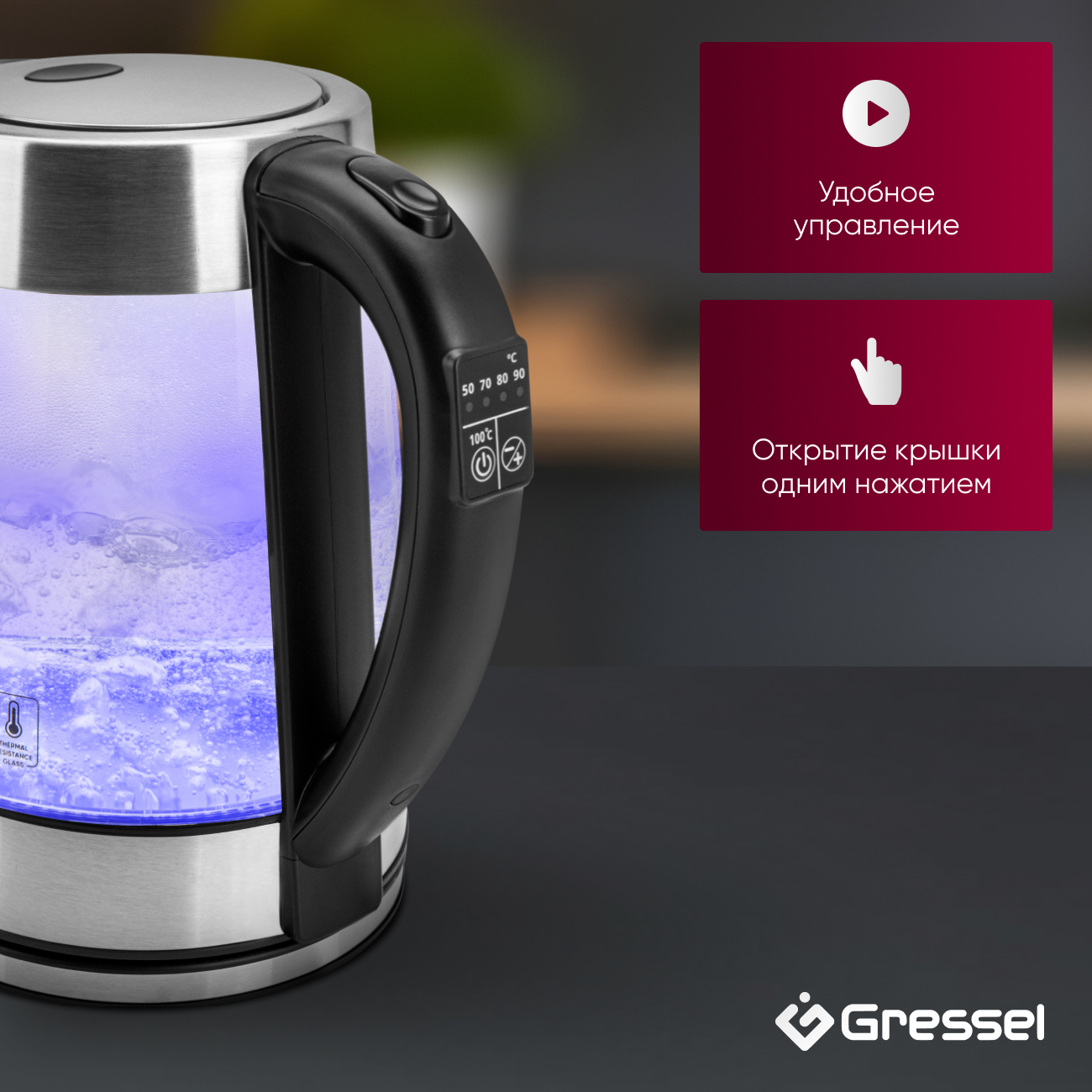 Электрический умный чайник Gressel GRK-1106 с регулировкой температуры, стеклянный с подсветкой, 1,7л, STRIX-контроллер