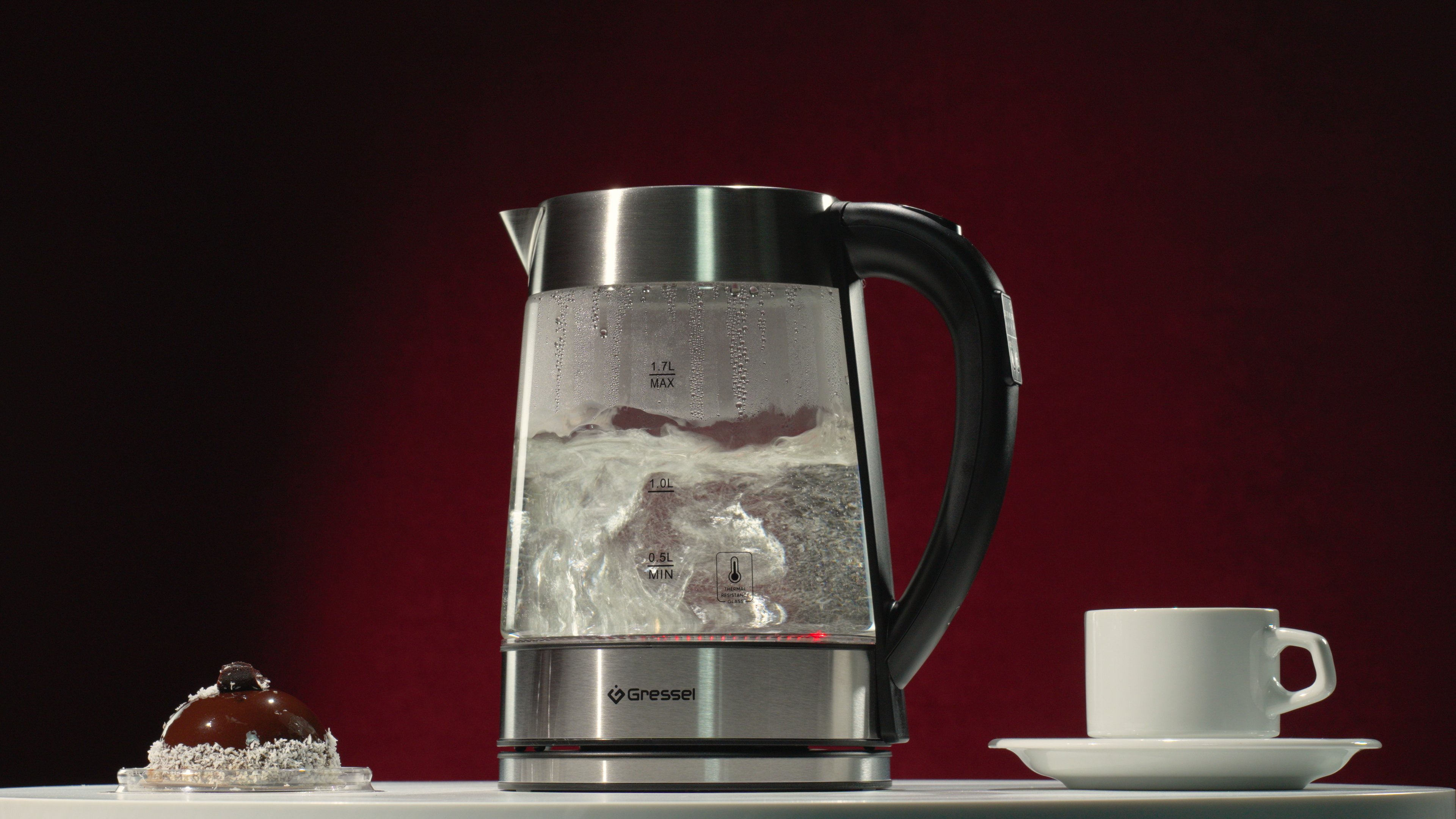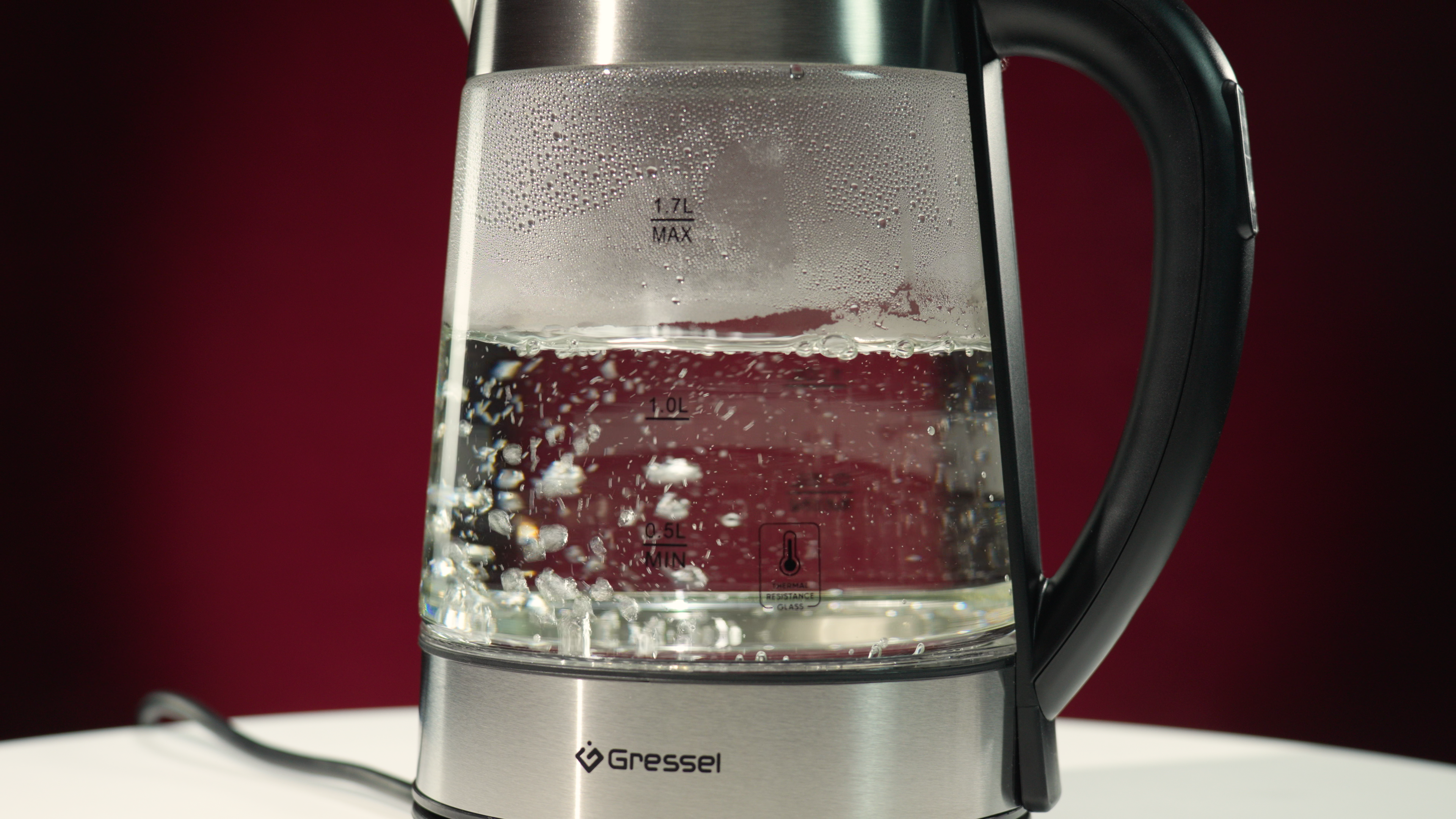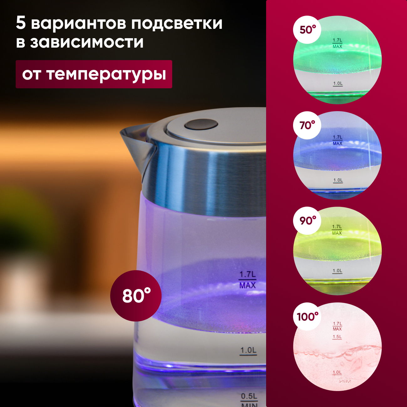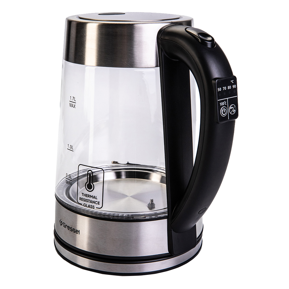 Электрический умный чайник Gressel GRK-1106 с регулировкой температуры, стеклянный с подсветкой, 1,7л, STRIX-контроллер