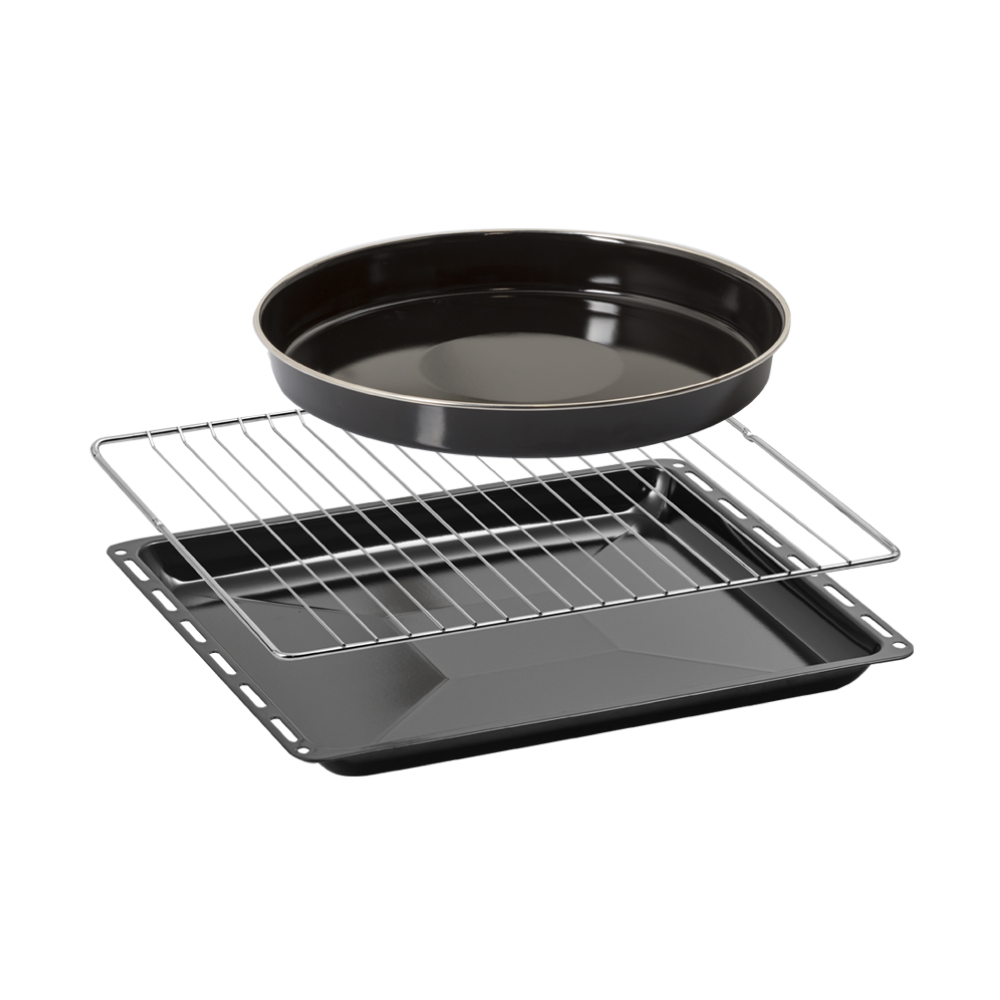 Эмаль легкой очистки: Легко очищаемая эмаль и хромированные направляющие делают уход за духовкой быстрым и удобным.