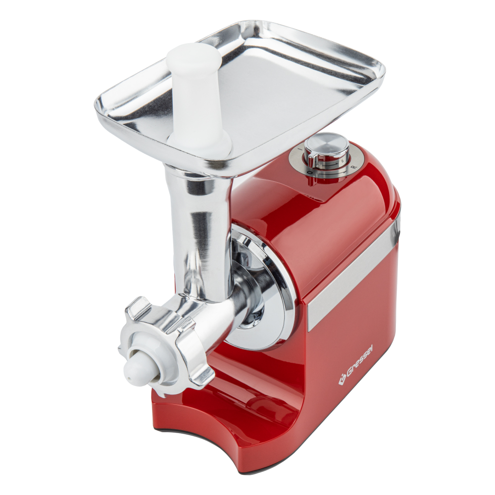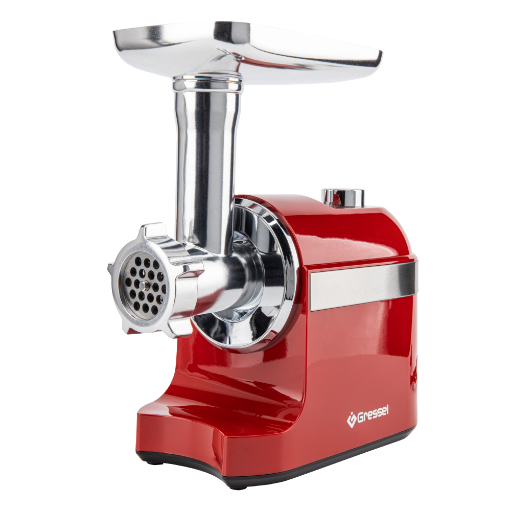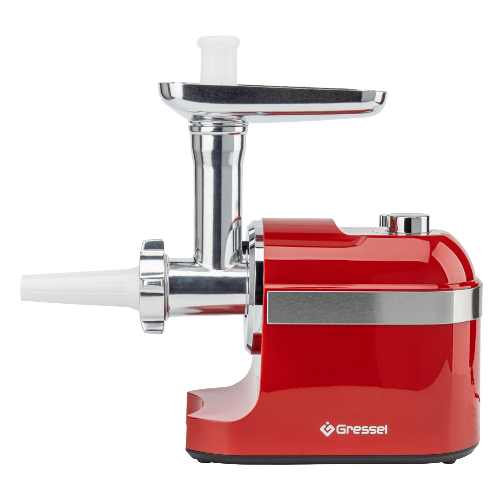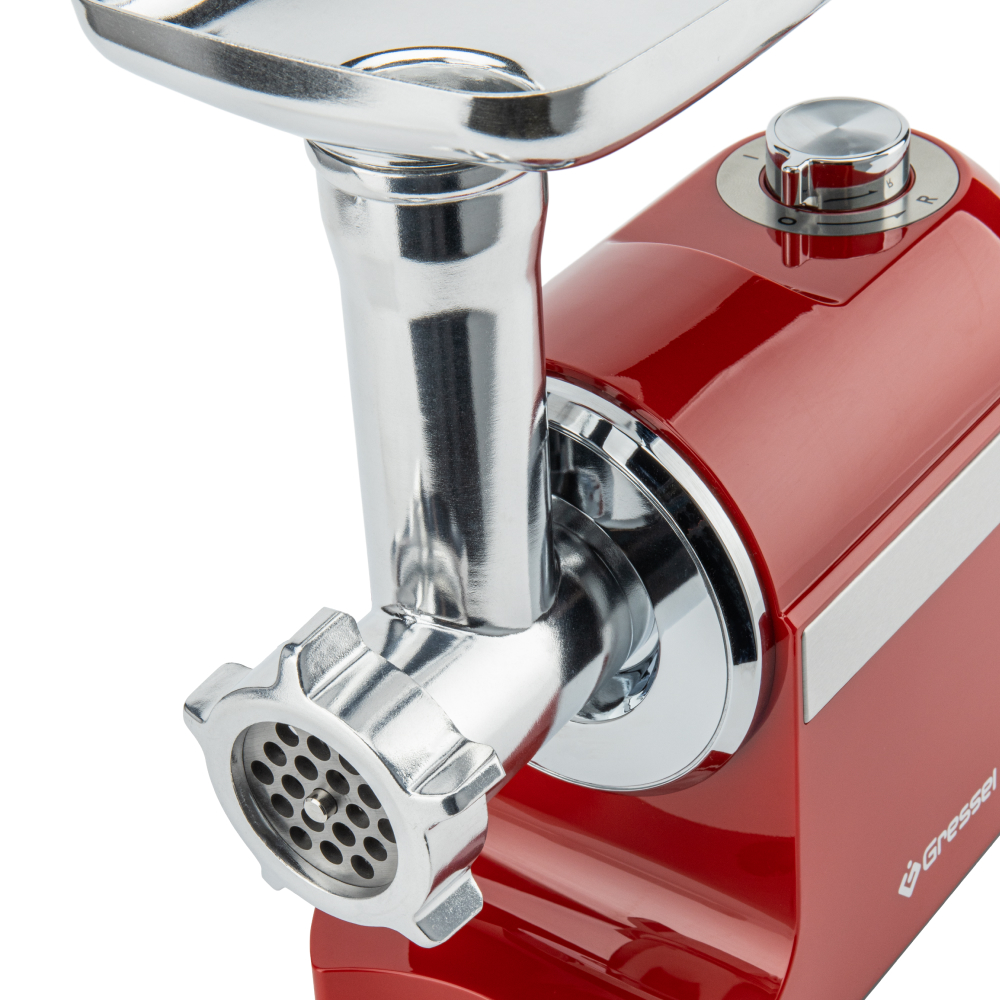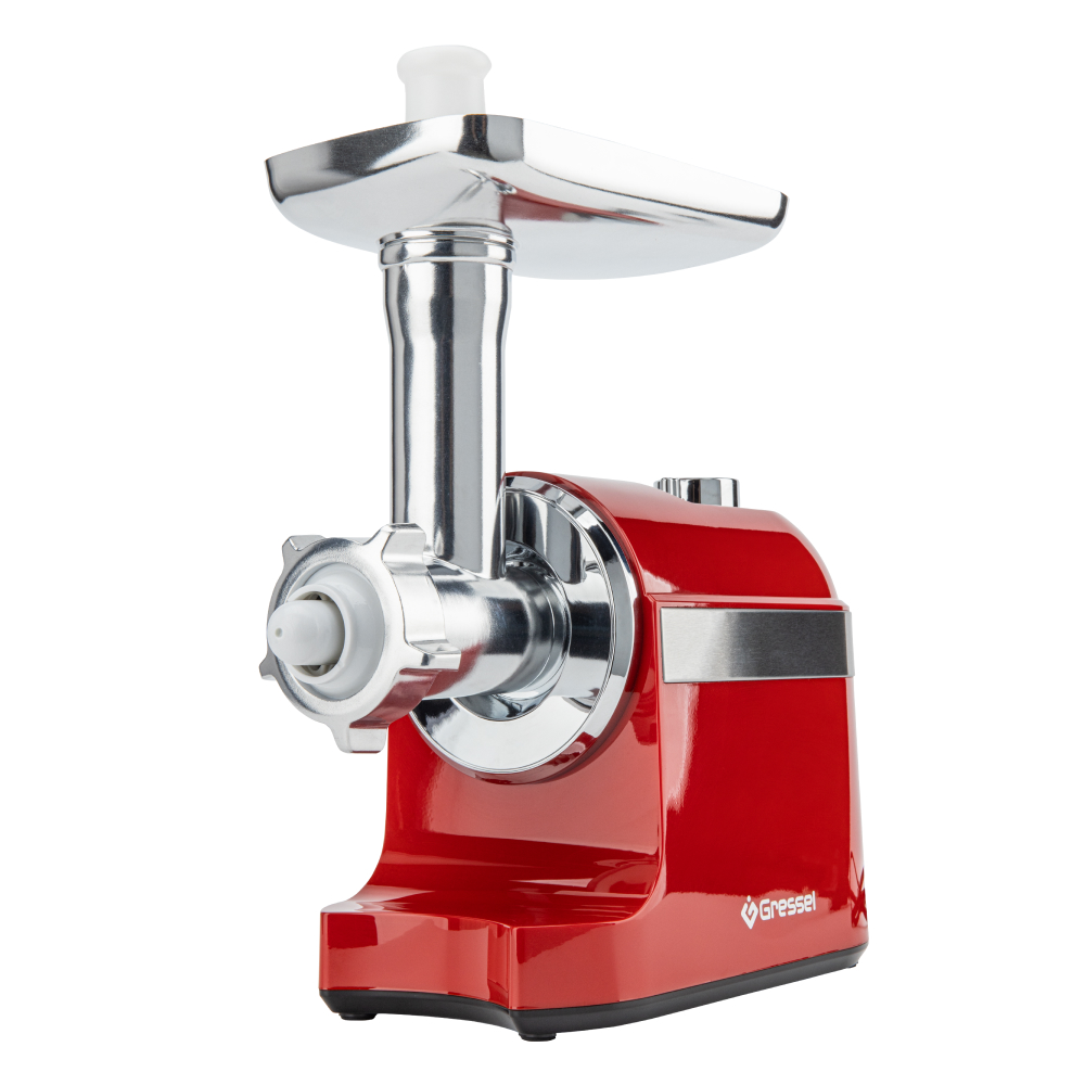 Мясорубка электрическая Gressel GMG-1702, красная, 2000Вт, металлические шестерни, насадки для кеббе и колбасок, 3 решетки для фарша