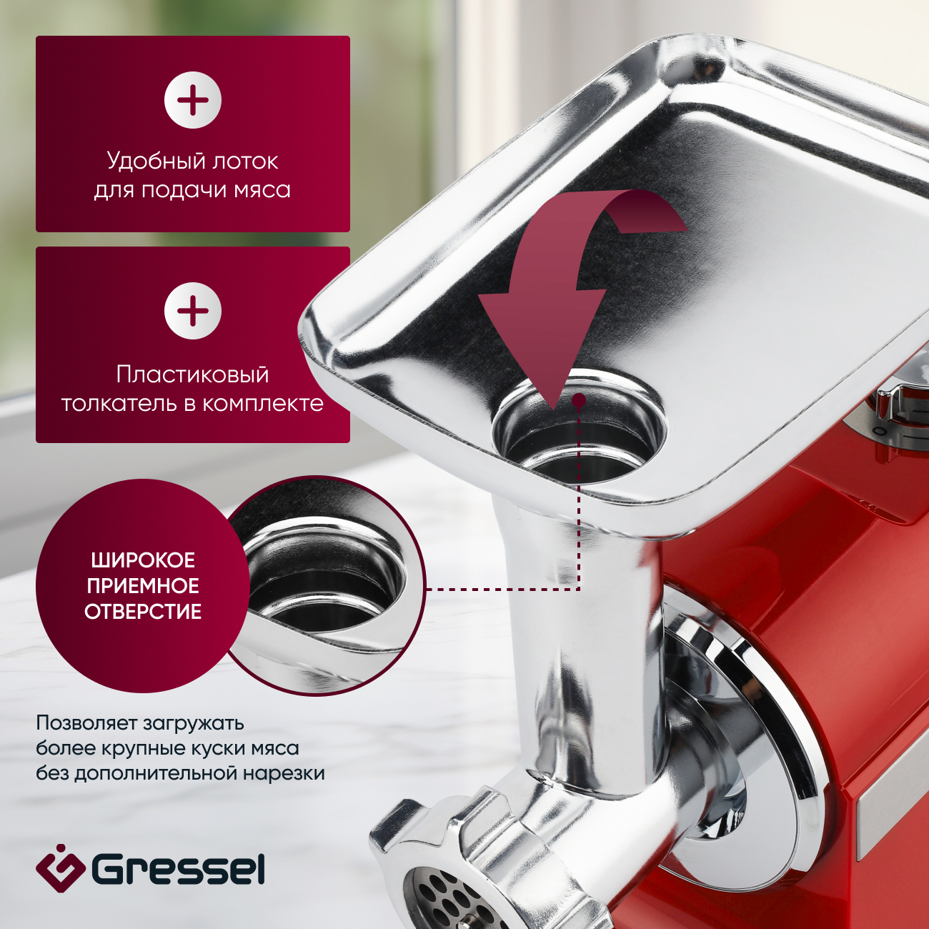 С мясорубкой Gressel каждый прием пищи может превратиться в праздник вкуса, благодаря качеству и универсальности приготовления мясных блюд.