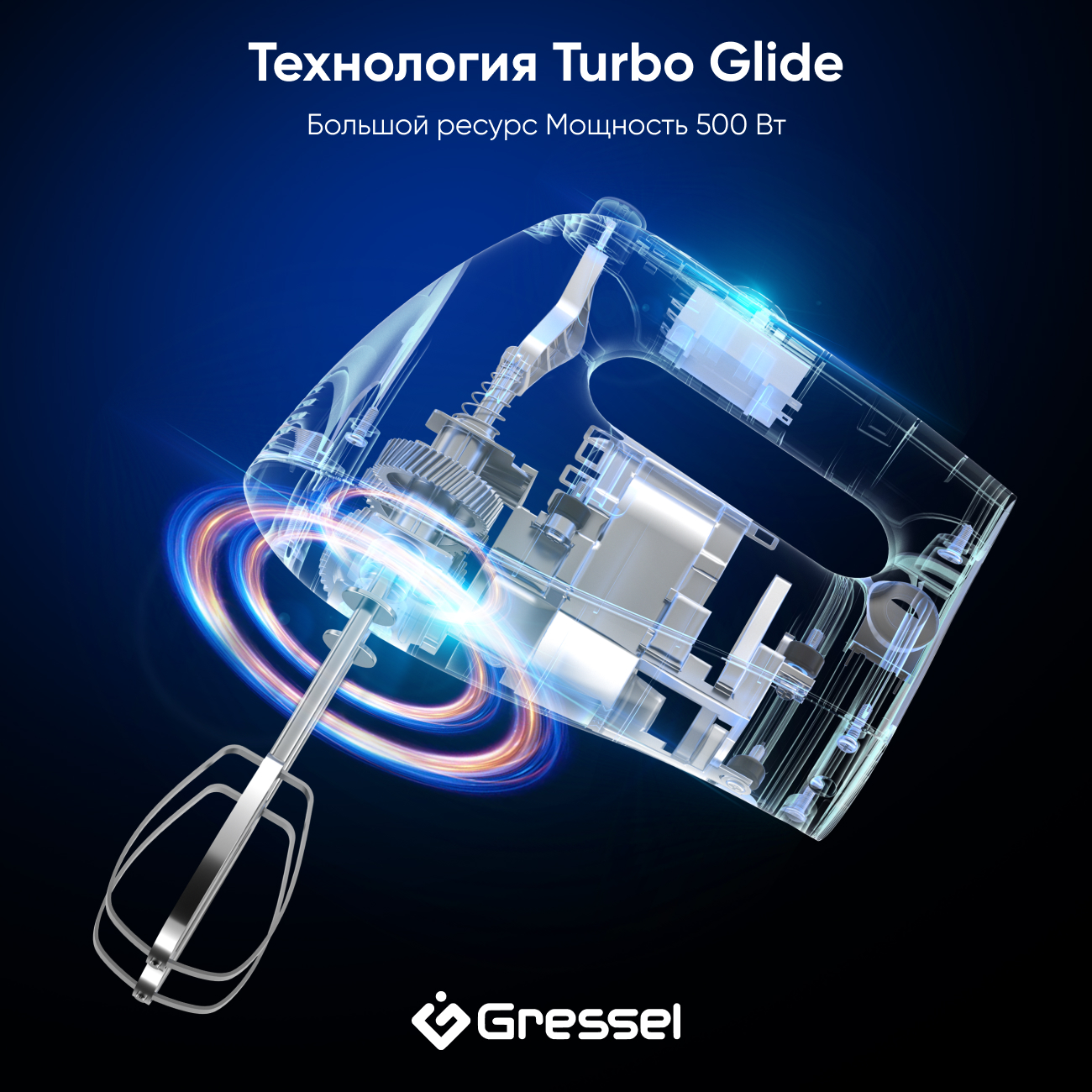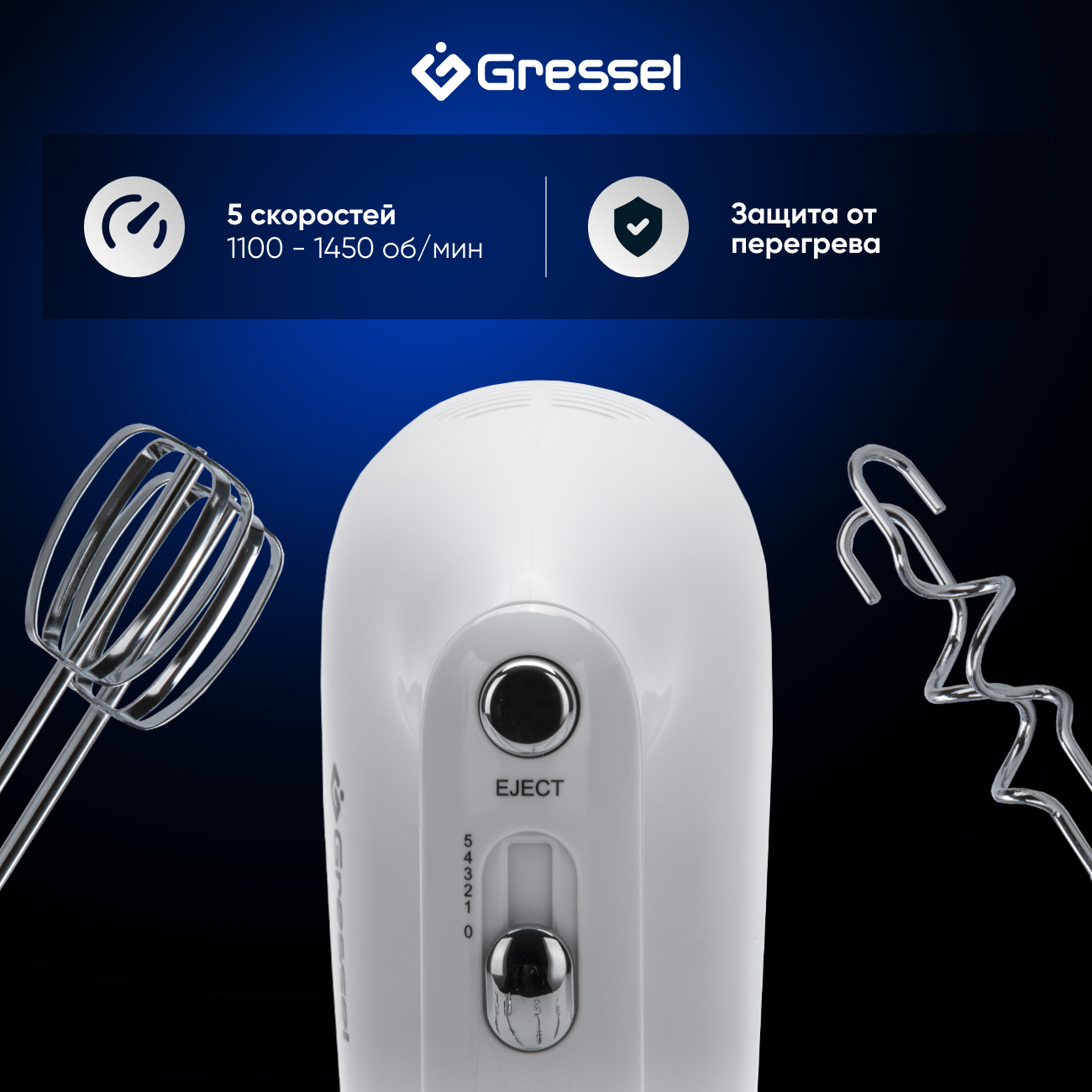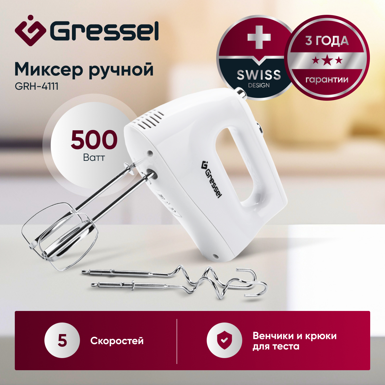 Миксер ручной кухонный Gressel GRH-4111, 2 комплекта насадок, 500 Вт