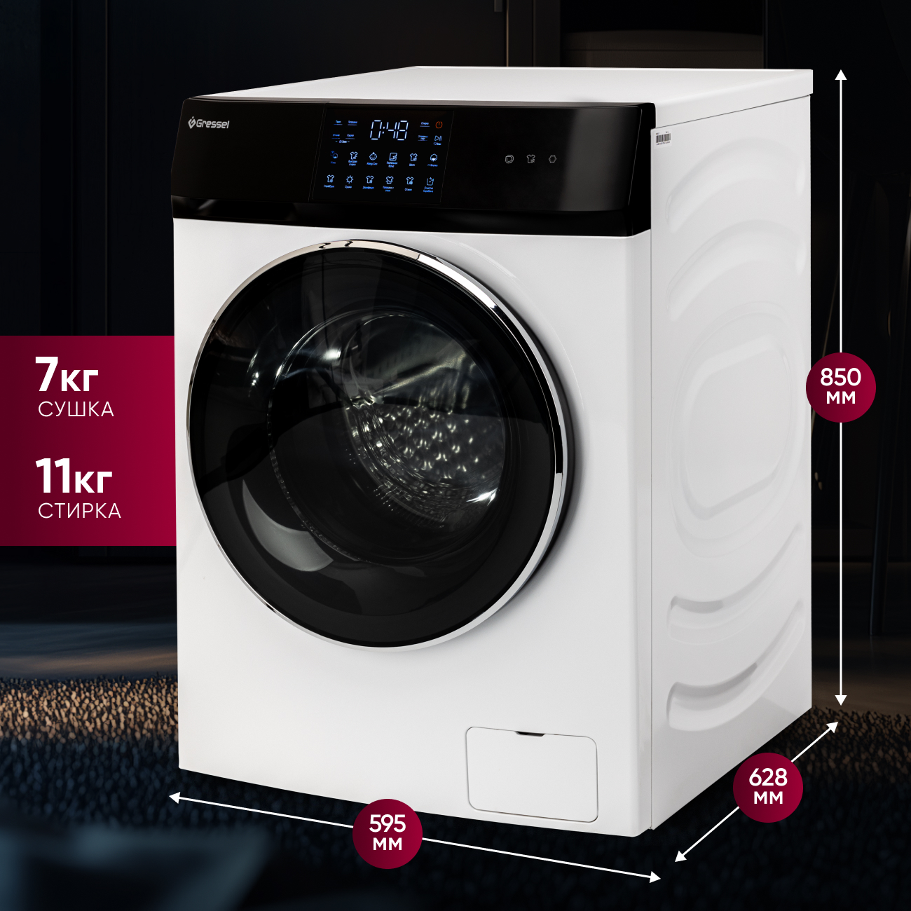 Стиральная машина с сушкой Gressel UWS602 (11 кг) с инверторным мотором Direct Drive и дозагрузкой белья