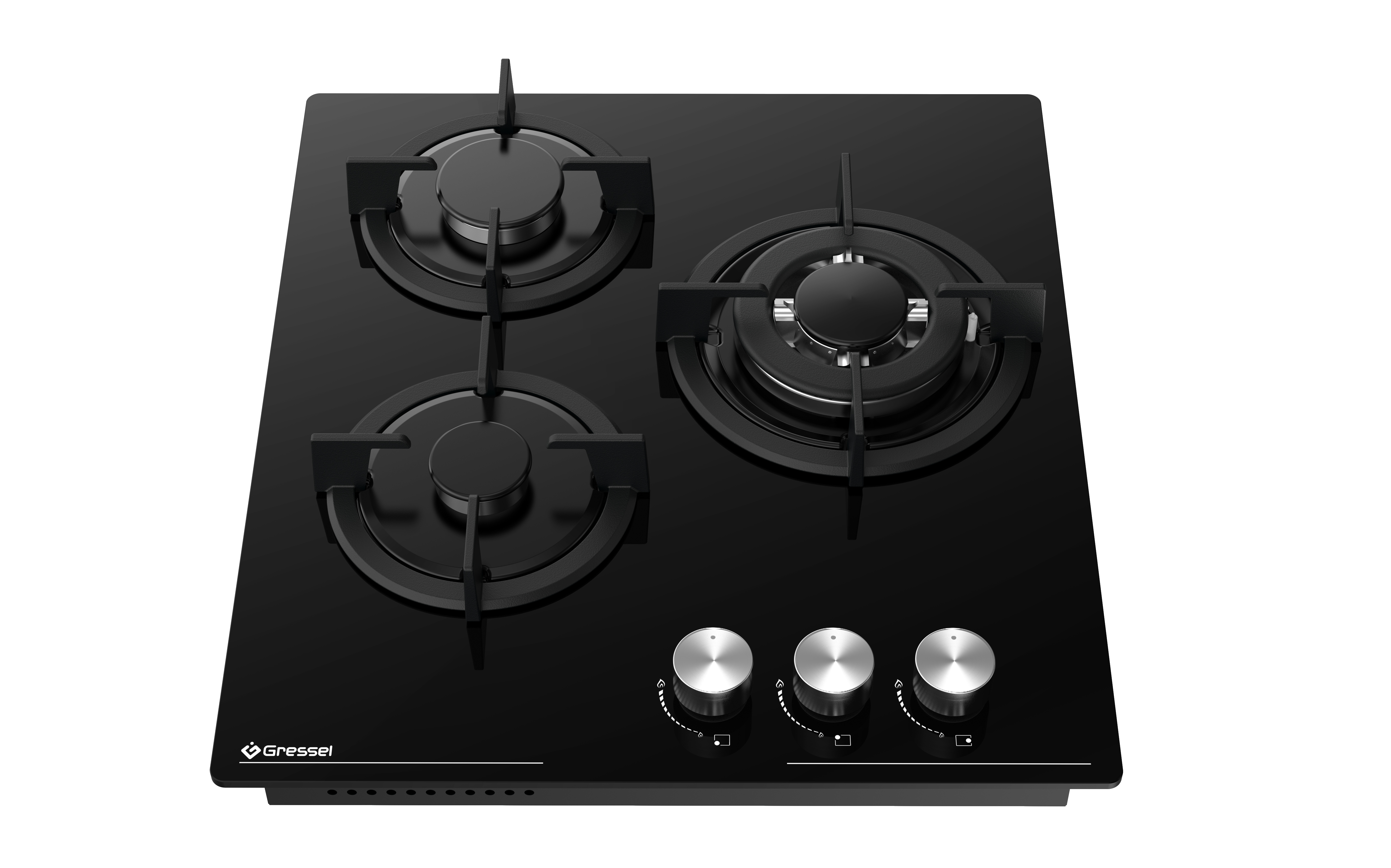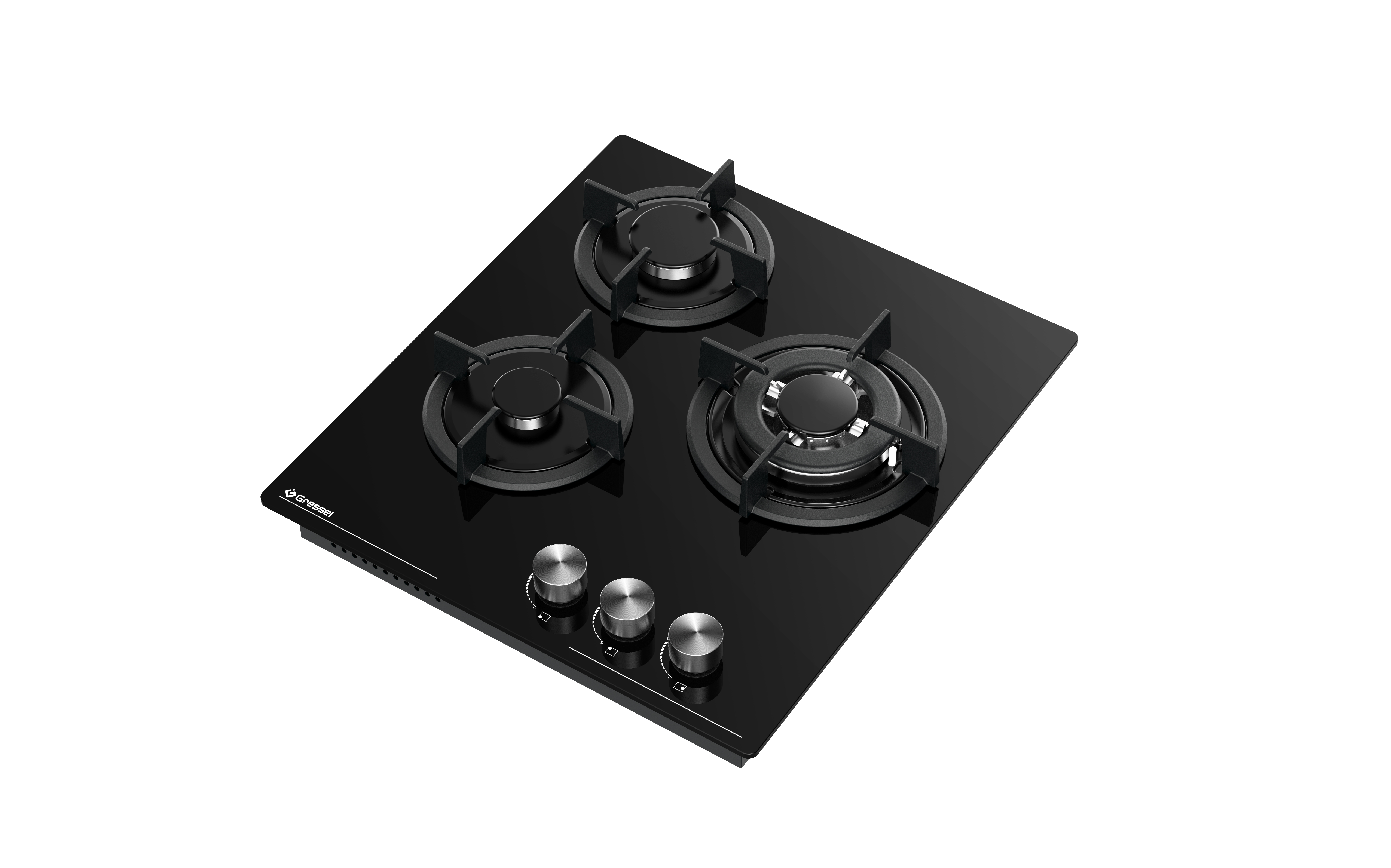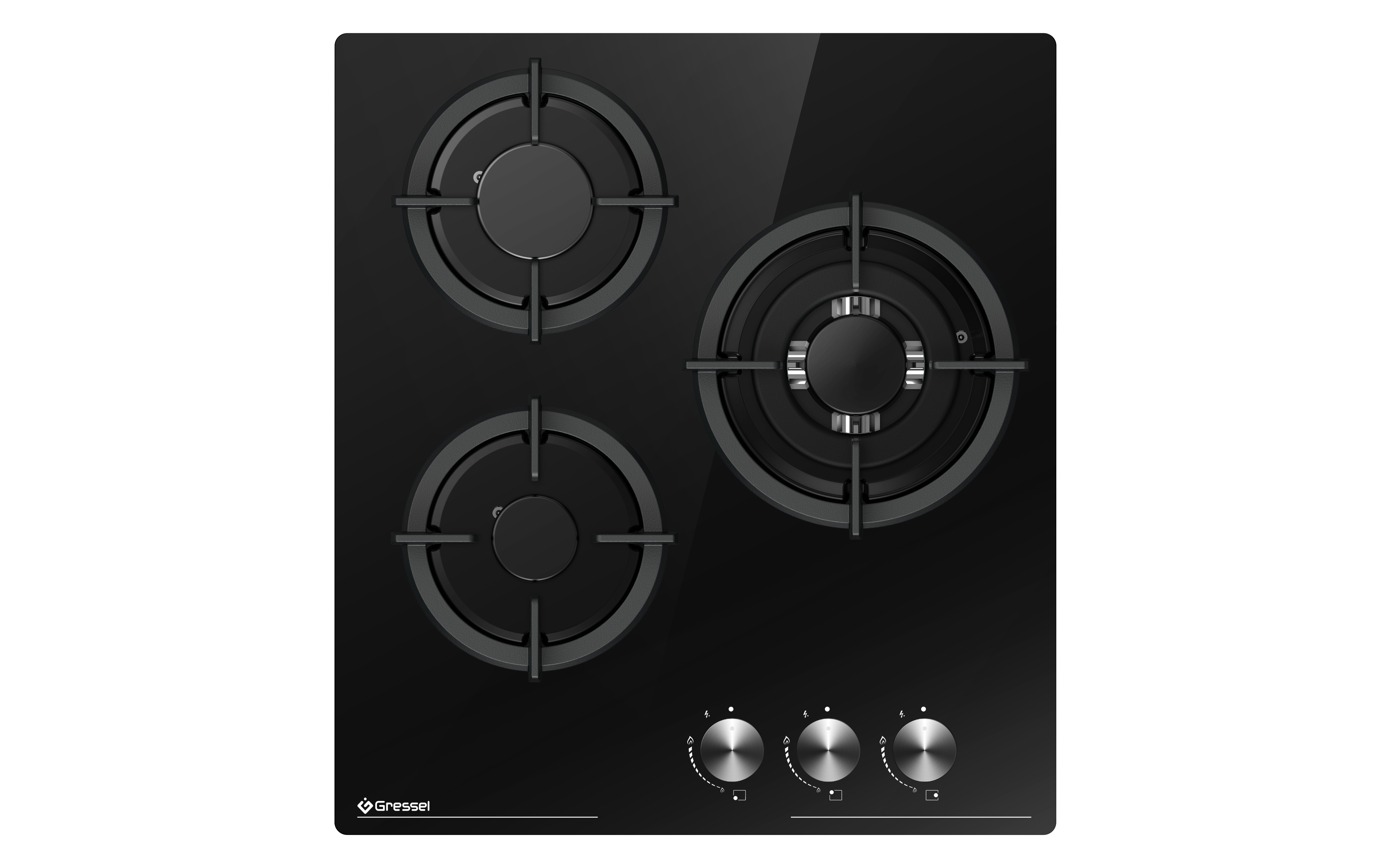 Газовая варочная панель GRESSEL U45N35S000 45 см, закаленное стекло, WOK-конфорка, автоматический розжиг, газ-контроль, чугунные решетки