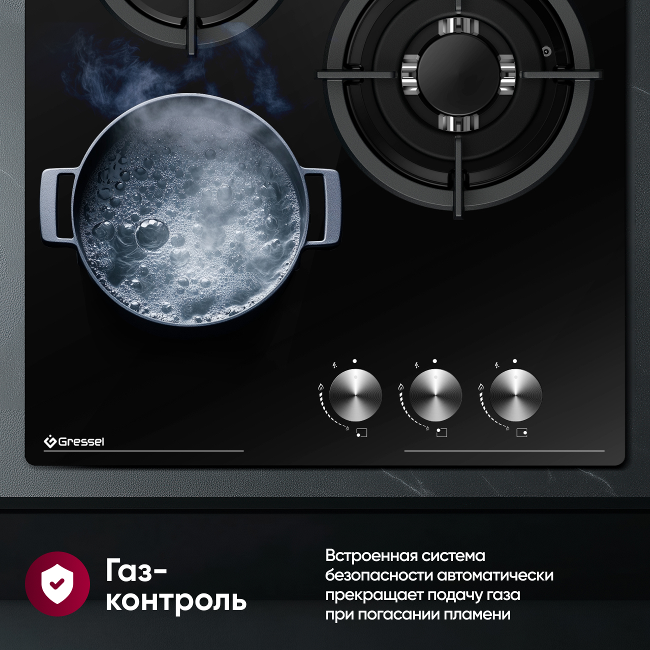 Газ-контроль: Обеспечивает безопасность, автоматически прекращая подачу газа при затухании пламени.