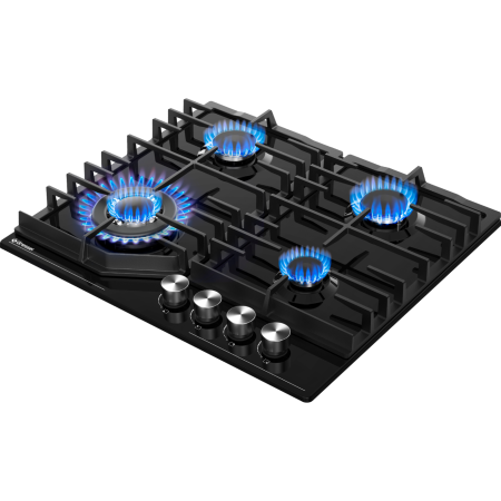 Ширина 60 см: Удобное расположение четырёх конфорок для комфортного приготовления нескольких блюд одновременно.