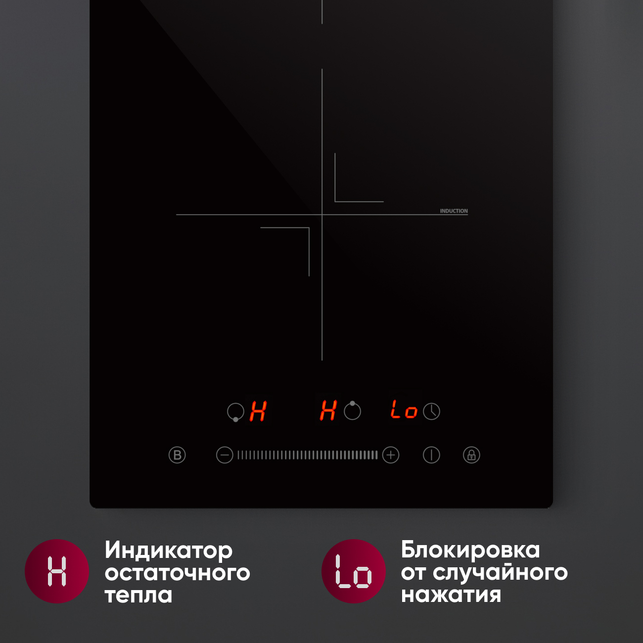 Панель оснащена датчиком наличия посуды, который гарантирует, что нагрев будет активирован только при наличии посуды на конфорке. Защита от перегрева предотвращает случайное выкипание и перегрев, автоматически отключая панель в опасных ситуациях, что делает ее использование безопасным и надежным.