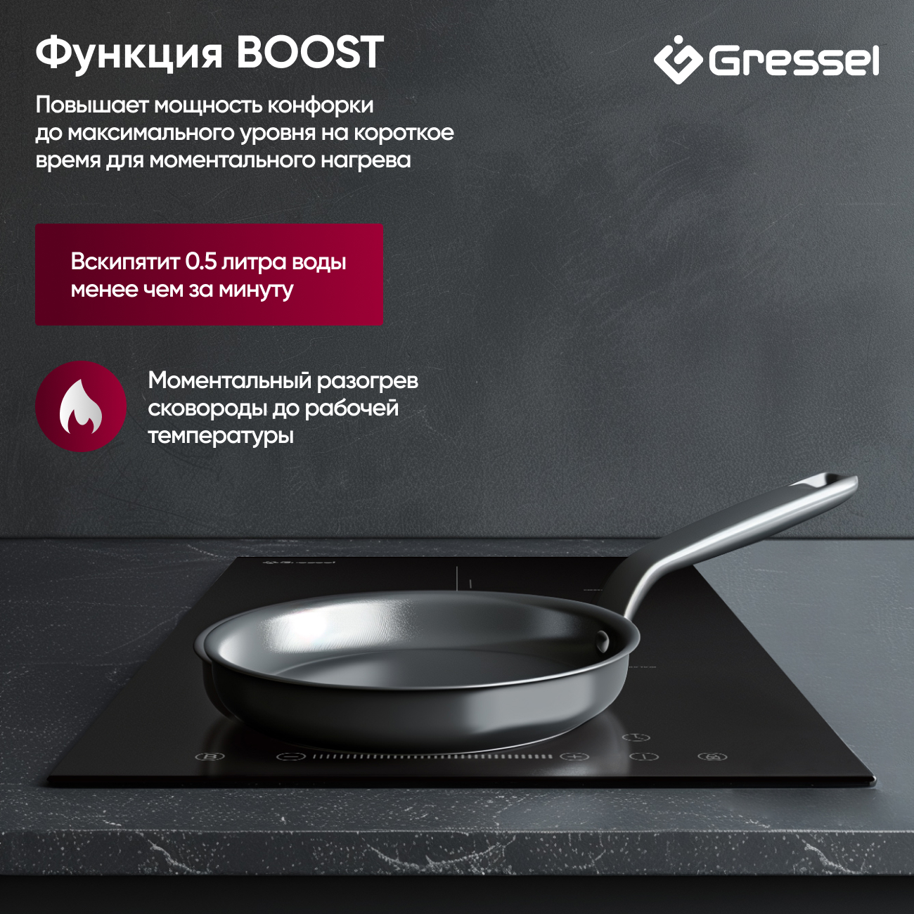 С индукционной варочной панелью Gressel U30I72S001 каждое приготовление станет проще и безопаснее, при этом сохраняя вашу кухню стильной и современной.