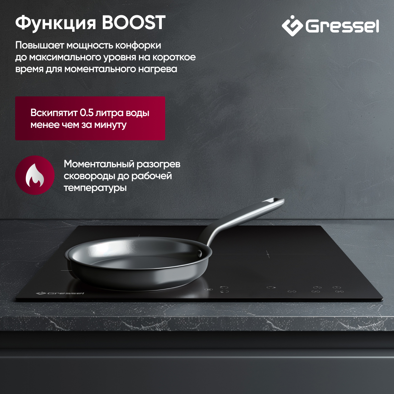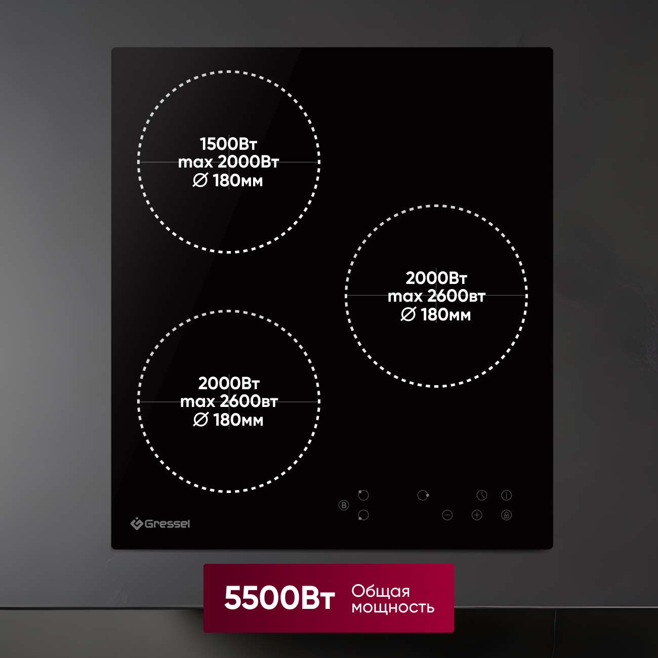 Индукционная варочная панель Gressel U45I73S000 предлагает передовые технологии и функциональность для современной кухни. Эта модель шириной 45 см оснащена тремя мощными конфорками с общей мощностью 5500 Вт, каждая из которых способна увеличивать свою мощность для быстрого нагрева благодаря функции Boost.