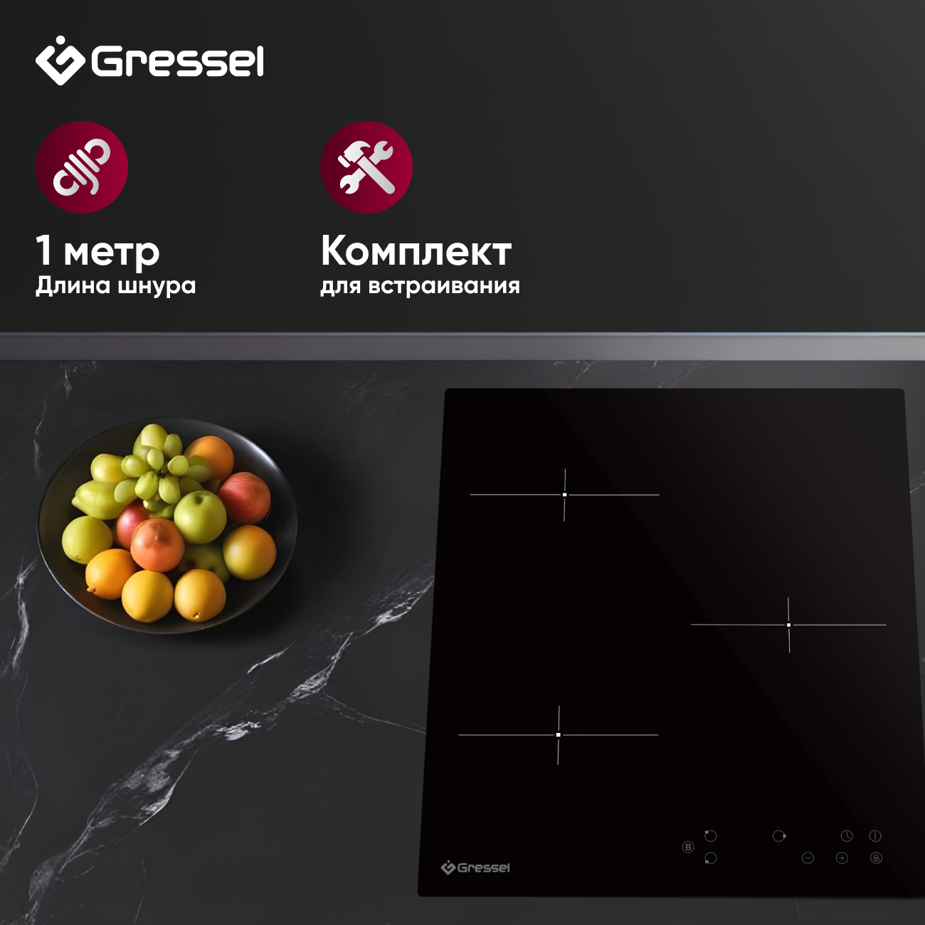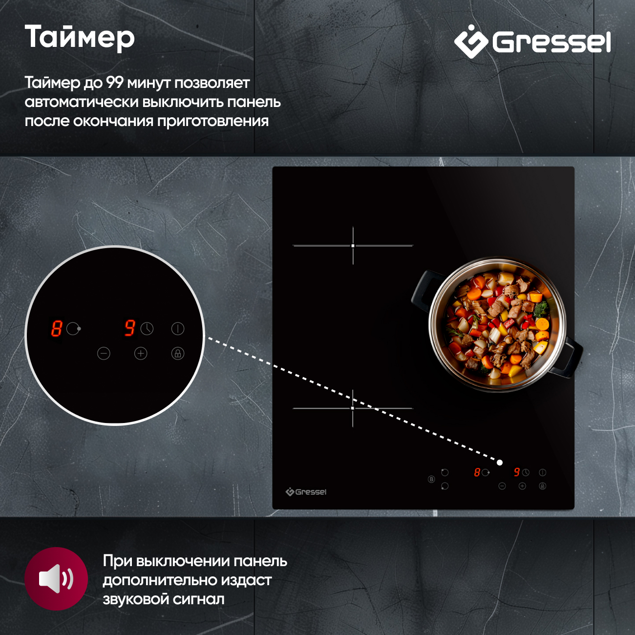 Встраиваемая индукционная варочная панель GRESSEL U45I73S000, 45 см, 5500Вт, сенсорное управление Touch control, блокировка, индикатор остаточного тепла, таймер