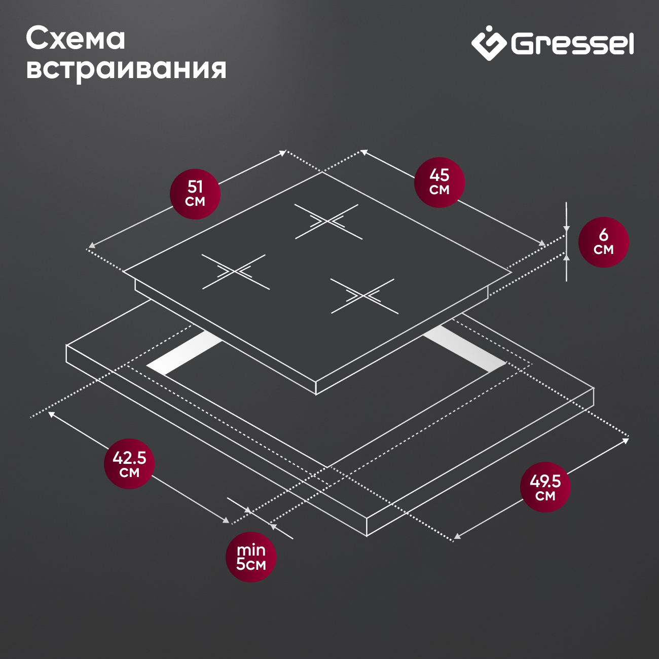 Эта индукционная варочная панель Gressel U45I73S001 сочетает в себе продвинутые технологии, стиль и безопасность, делая её незаменимым элементом любой кухни.