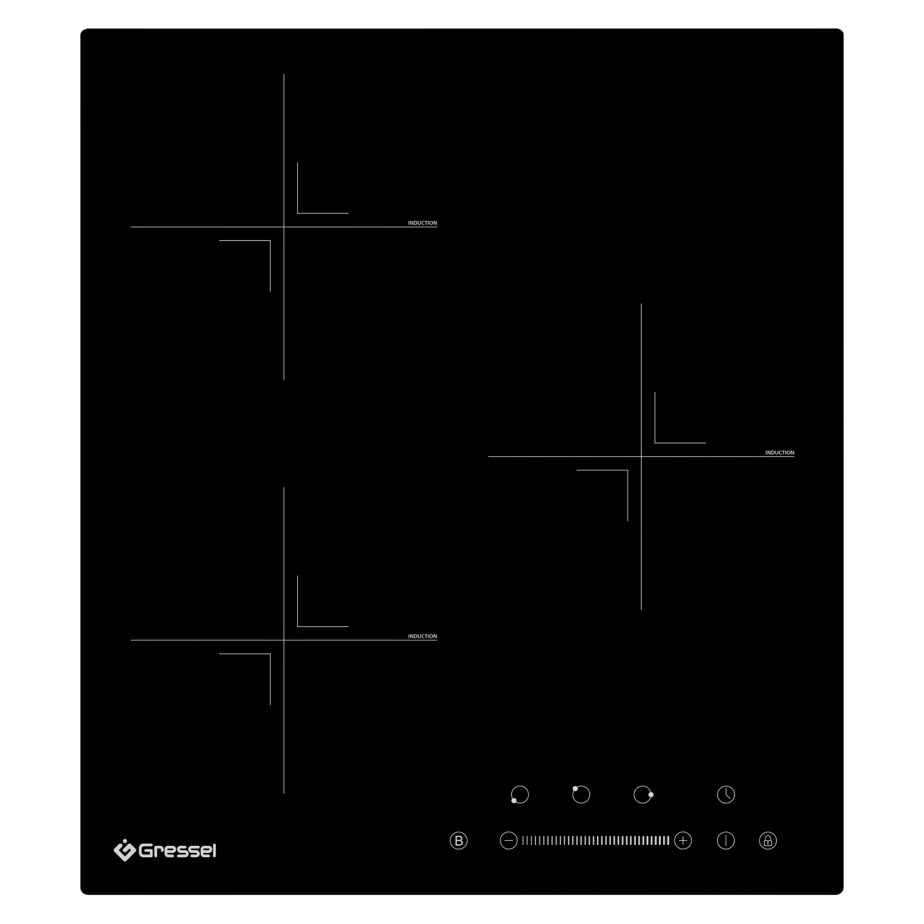Встраиваемая индукционная варочная панель GRESSEL U45I73S001, 45 см, 5500Вт, сенсорное управление Slider control, блокировка, датчик наличия посуды, таймер
