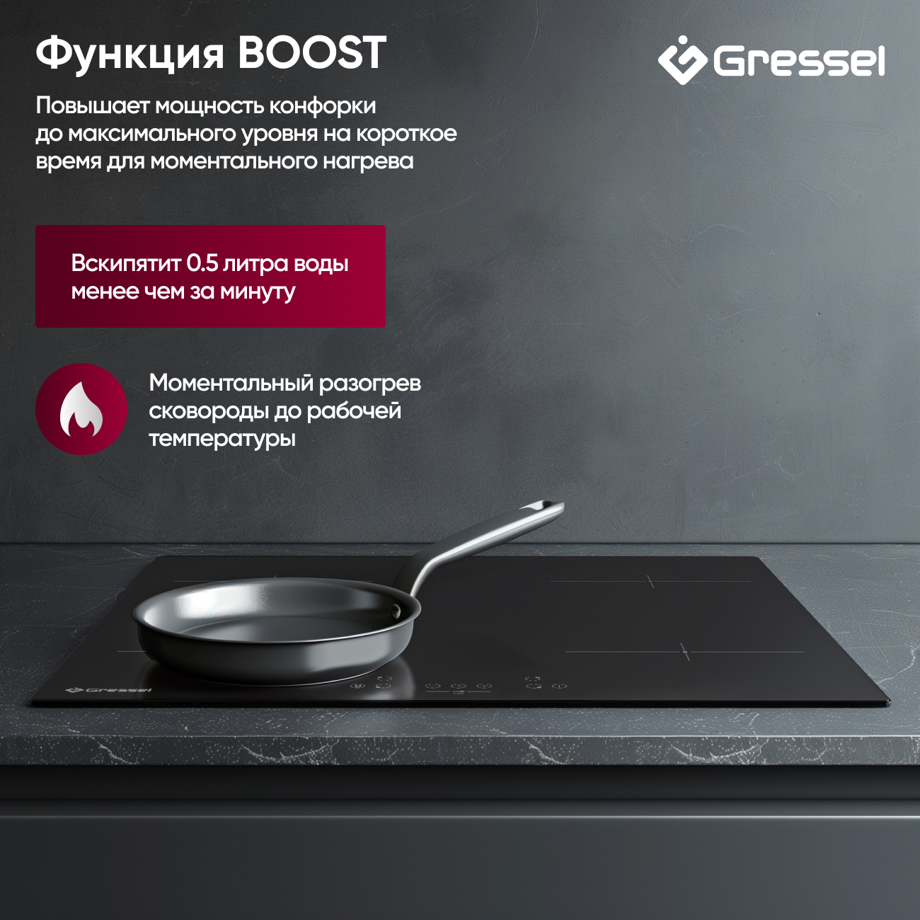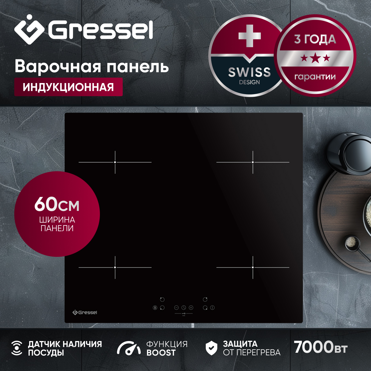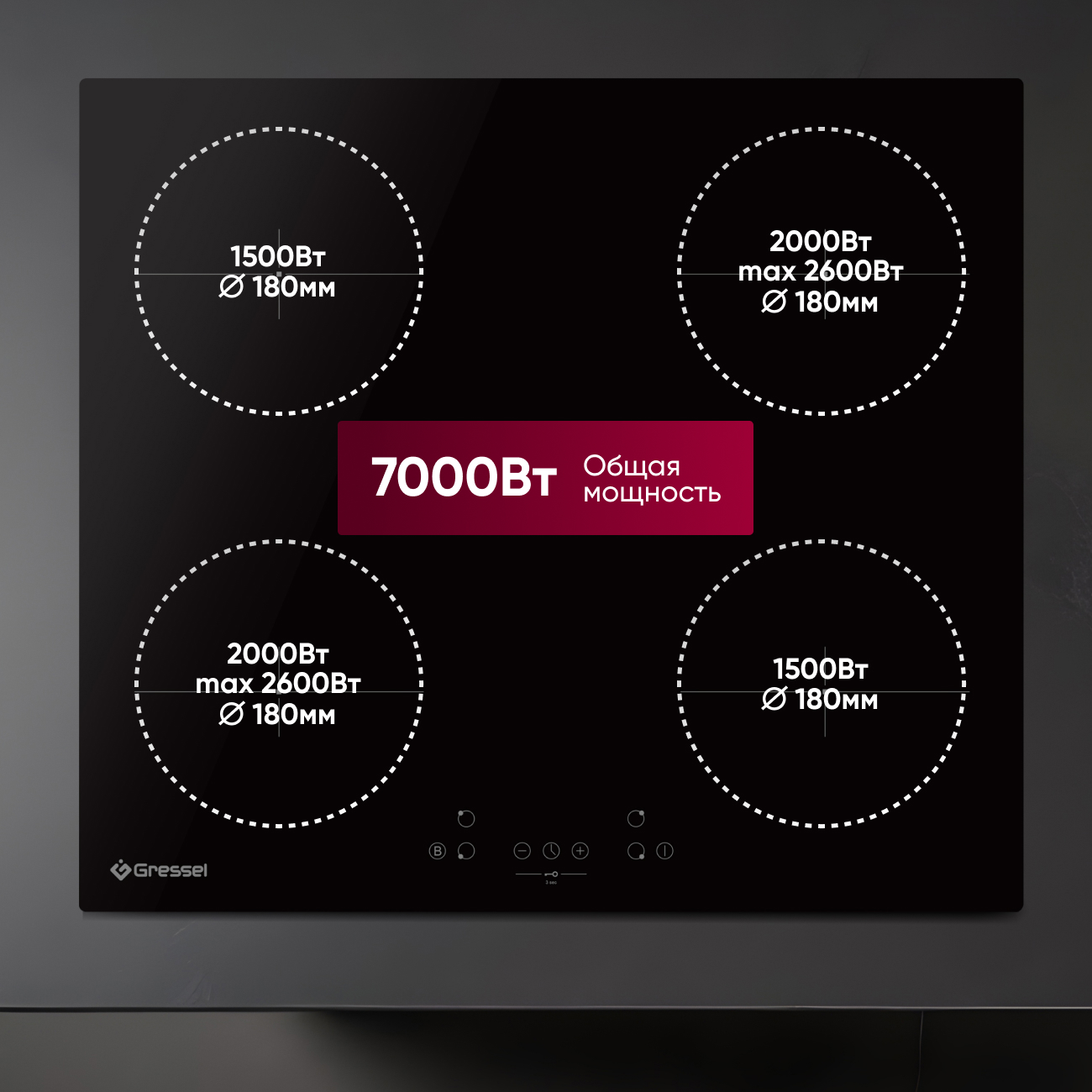 Индукционная варочная панель Gressel U60I74S000 предлагает высокую производительность и современный дизайн, идеально подходящие для любой кухни. С шириной 60 см и общей мощностью 7000 Вт, эта панель оснащена четырьмя конфорками, каждая из которых способна достигать максимальной мощности благодаря функции Boost для моментального нагрева, что позволяет вскипятить 0,5 литра воды за считанные секунды.