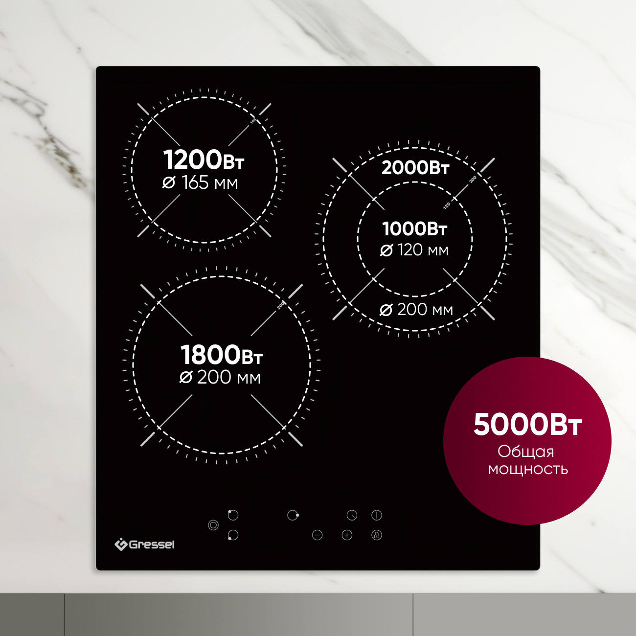 Настольная электрическая варочная панель Gressel TTD29S000-45, 45 см, 5000Вт, зона расширения, сенсорное управление Touch control, блокировка, таймер