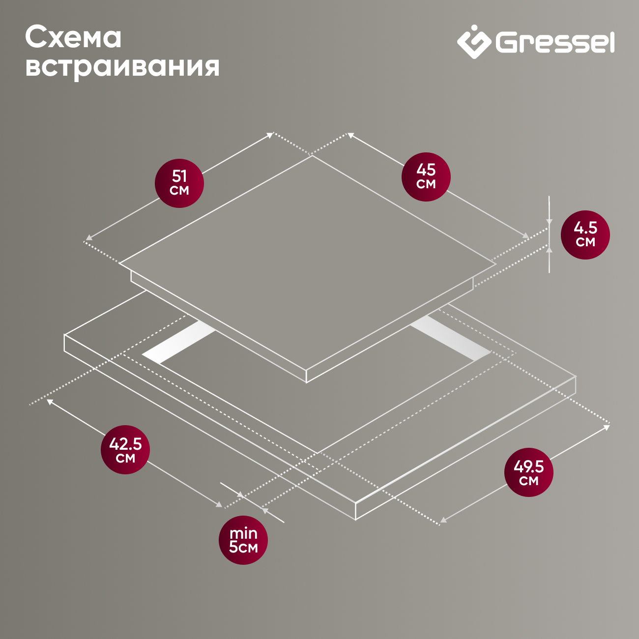 Электрическая варочная панель Gressel U45D29S000 — это сочетание функциональности, безопасности и стиля, делающее её идеальным выбором для современной кухни.