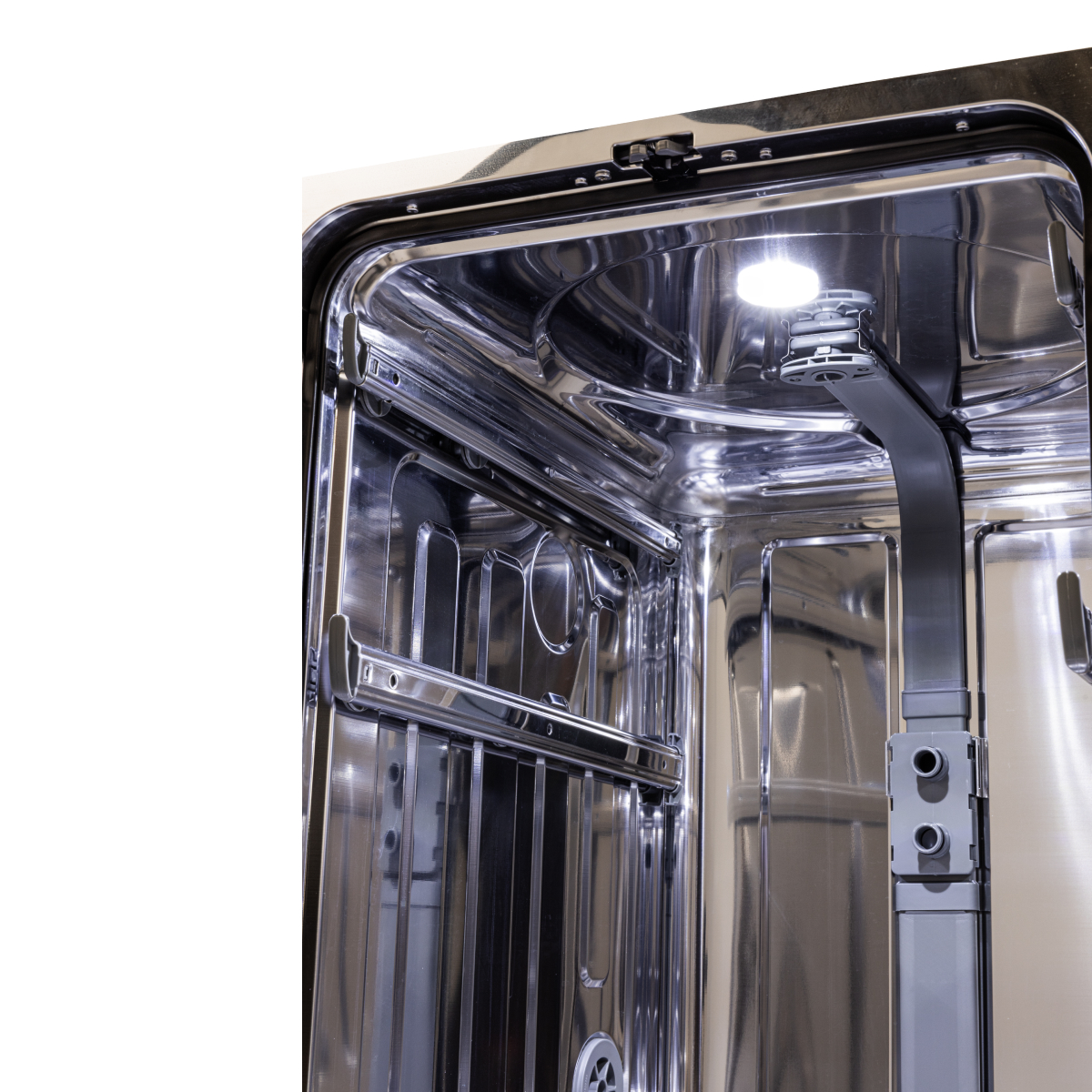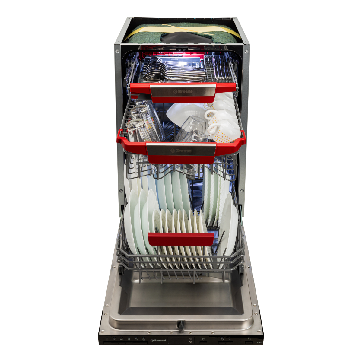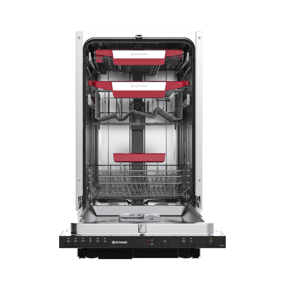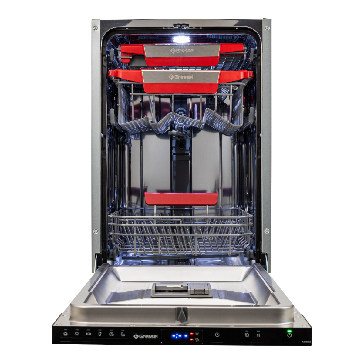 Познакомьтесь с Gressel UBB502 — узкой встраиваемой посудомоечной машиной, которая сочетает компактные размеры и впечатляющую функциональность. Несмотря на ширину всего 45 см, она вмещает до 10 комплектов посуды и предлагает 6 программ, включая «Интенсивную», «ЭКО», «Стекло» и «Быструю». Кроме того, «90-минутный» режим позволяет вымыть и высушить посуду в сжатые сроки без потери качества.