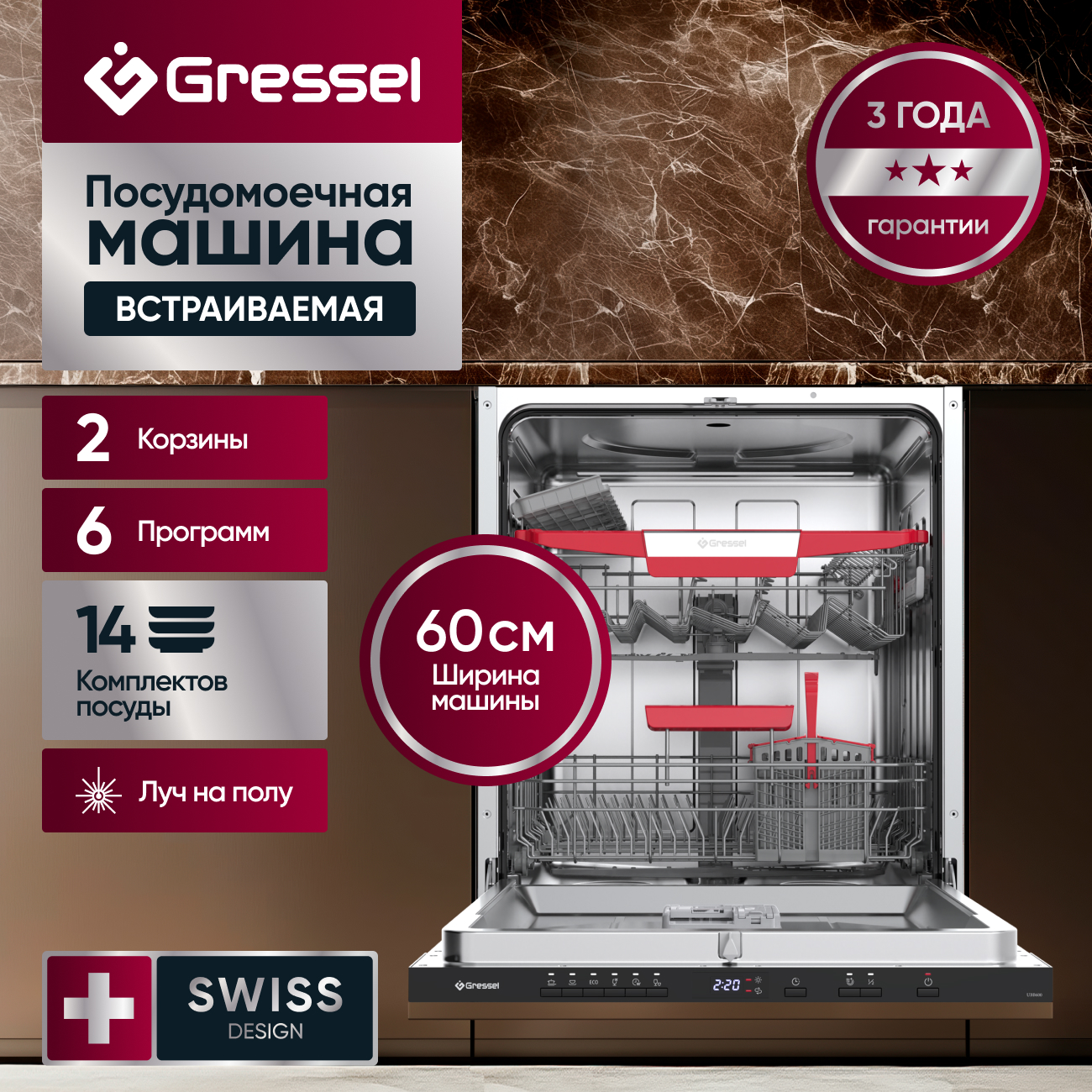 Встраиваемая посудомоечная машина Gressel UBB615 60 см