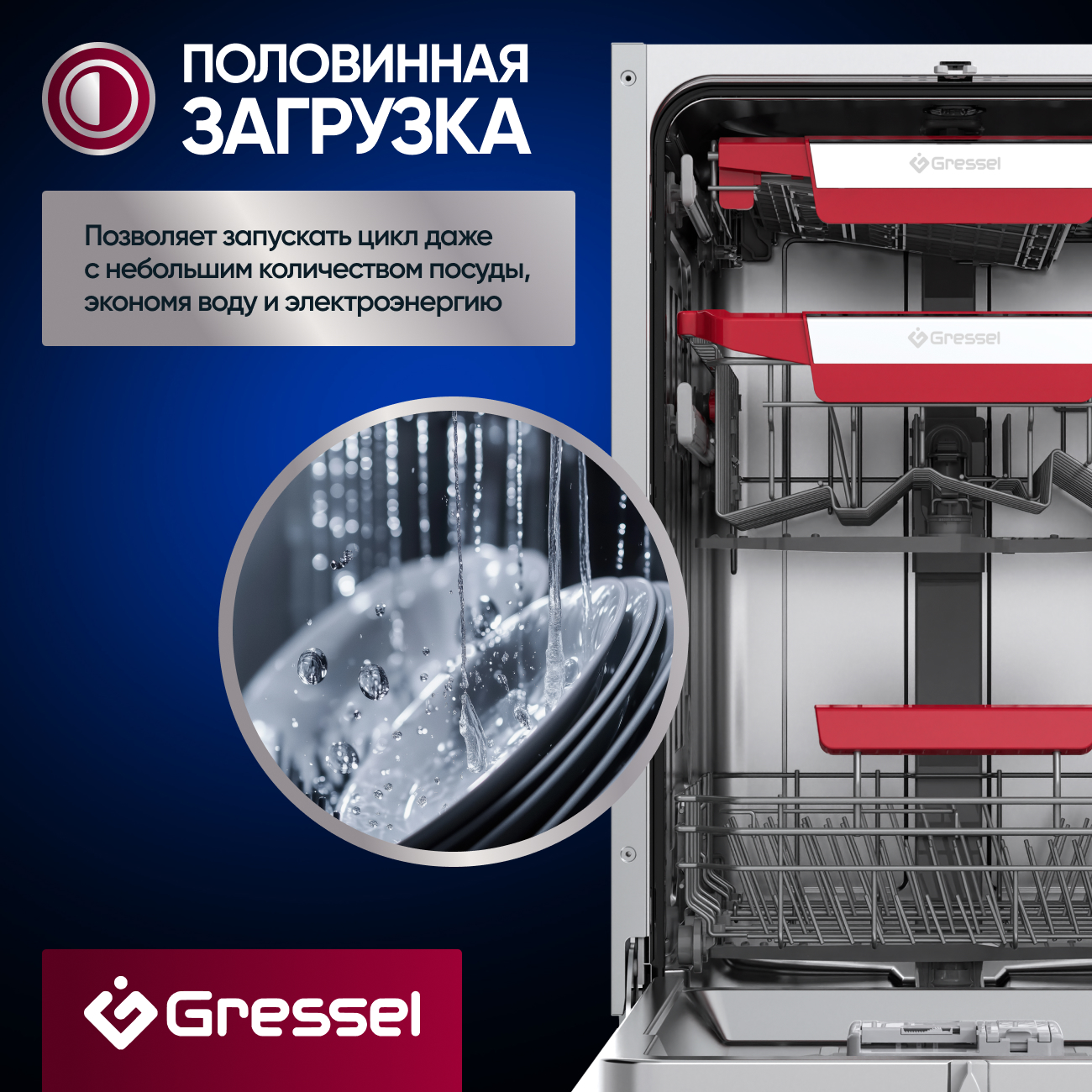 Узкая посудомоечная машина Gressel UBM501 — отличное решение для тех, кто ищет сочетание компактности и вместительности. При ширине 45 см она способна разместить до 10 комплектов посуды, что подойдёт для небольшой семьи или людей, часто принимающих гостей. Машина предлагает 6 программ, включая «Интенсивную» для пригоревших сковород и «Быструю» для лёгкой загрязнённости. «ЭКО»-режим поможет сэкономить на счетах за электричество, а деликатная программа «Стекло» позаботится о хрупких бокалах.