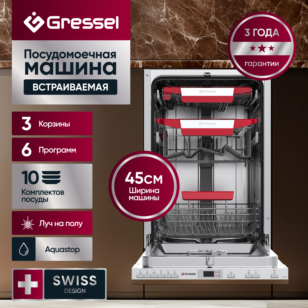 Встраиваемая посудомоечная машина Gressel UBM501 45 см