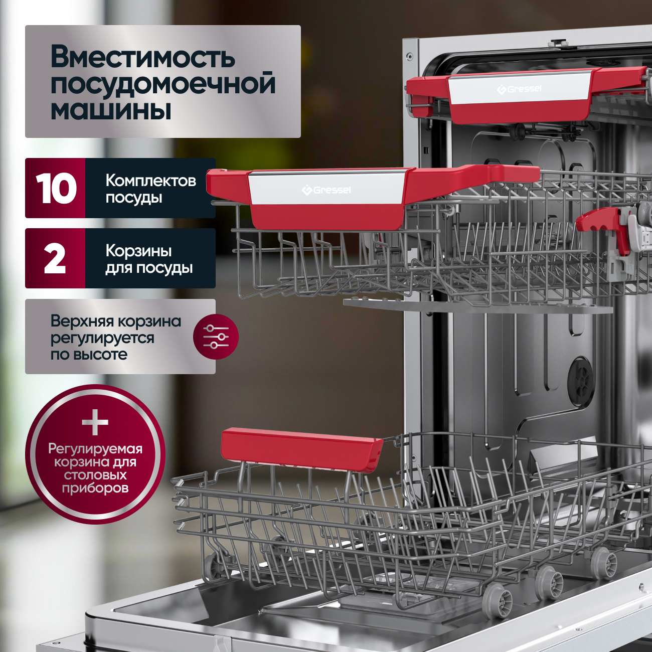 Отдельная стойка для приборов помогает аккуратно разместить ножи, вилки и ложки, освобождая пространство в нижней корзине для крупной посуды. Удобное кнопочное управление на скрытой панели и нержавеющая сталь корпуса внутри создают впечатление надёжности. Gressel UBM501 станет вашим надёжным помощником, если вы цените современный дизайн, экономичность и высокое качество мытья в небольшом форм-факторе.