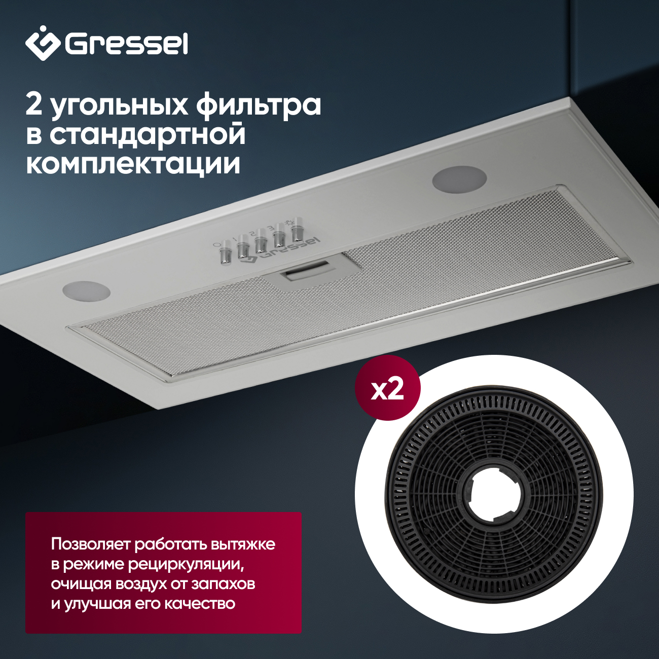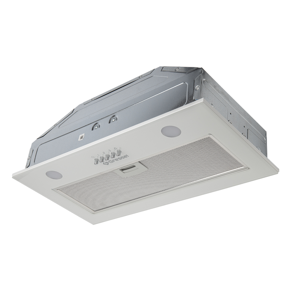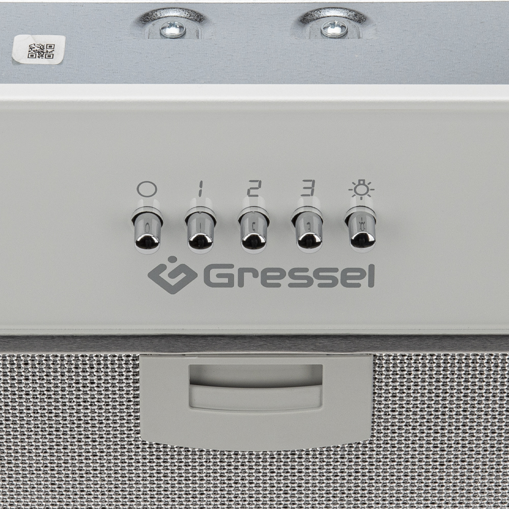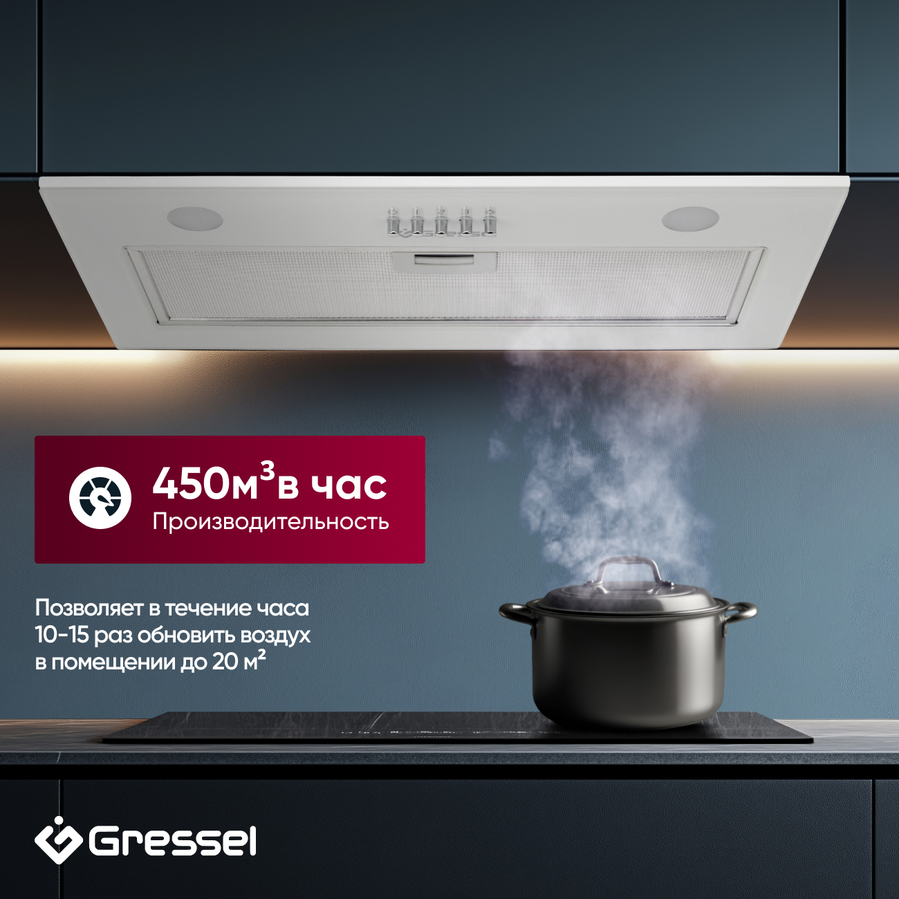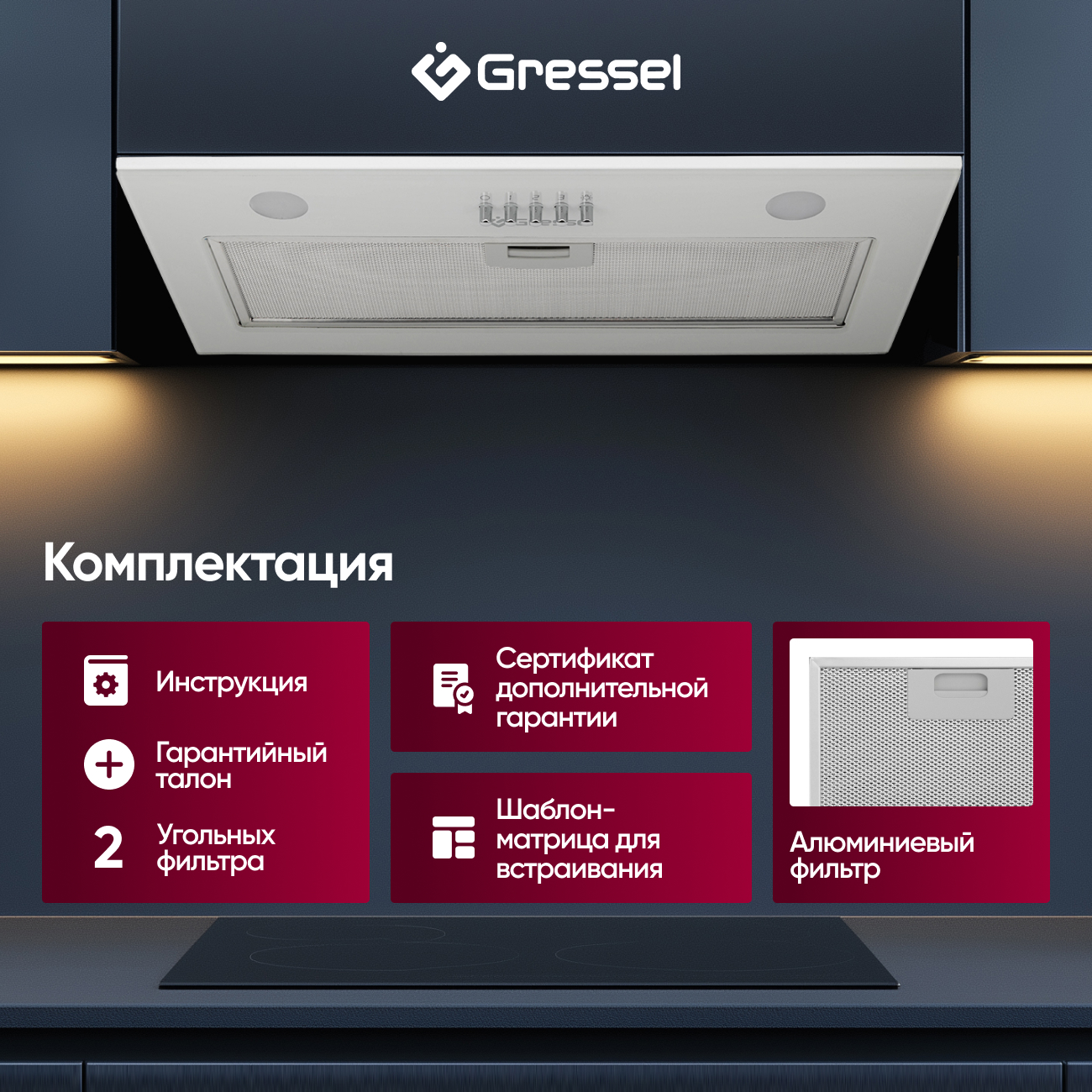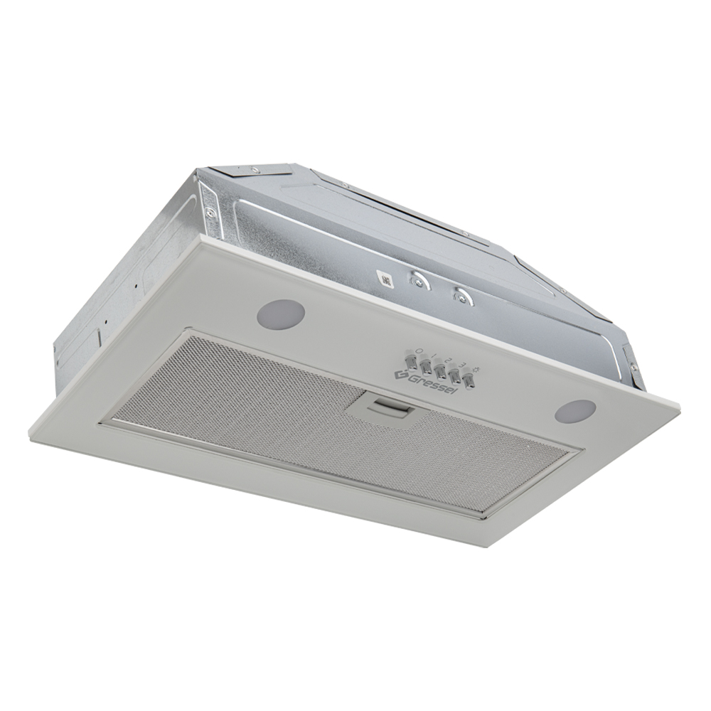 Встраиваемая вытяжка Gressel GR52W2 52 см (полновстраиваемая), LED подсветка, 3 скорости, GlassShield Control, режим отвода и рециркуляции, механическое управление, белая