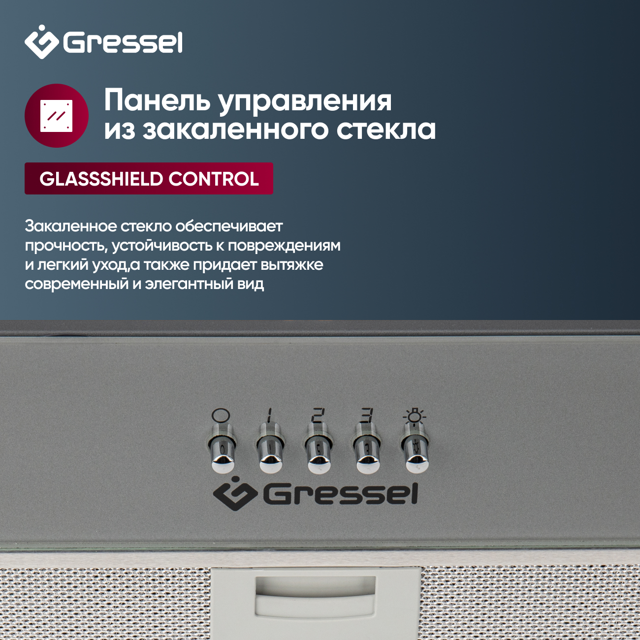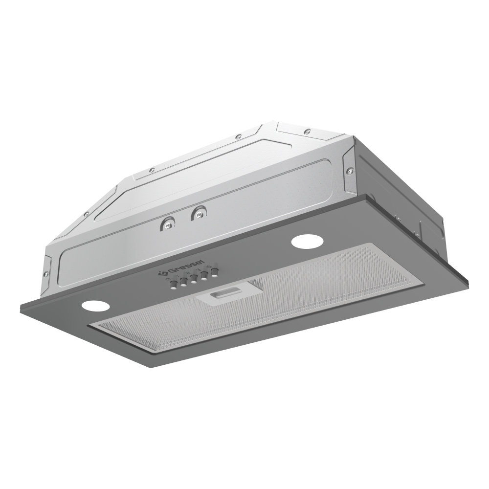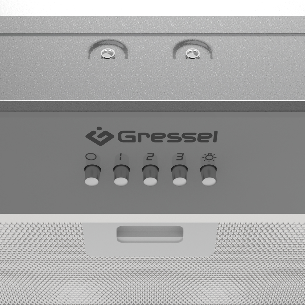 Встраиваемая вытяжка Gressel GR52M2 52 см (полновстраиваемая), LED подсветка, 3 скорости, GlassShield Control, режим отвода и рециркуляции, механическое управление, серая