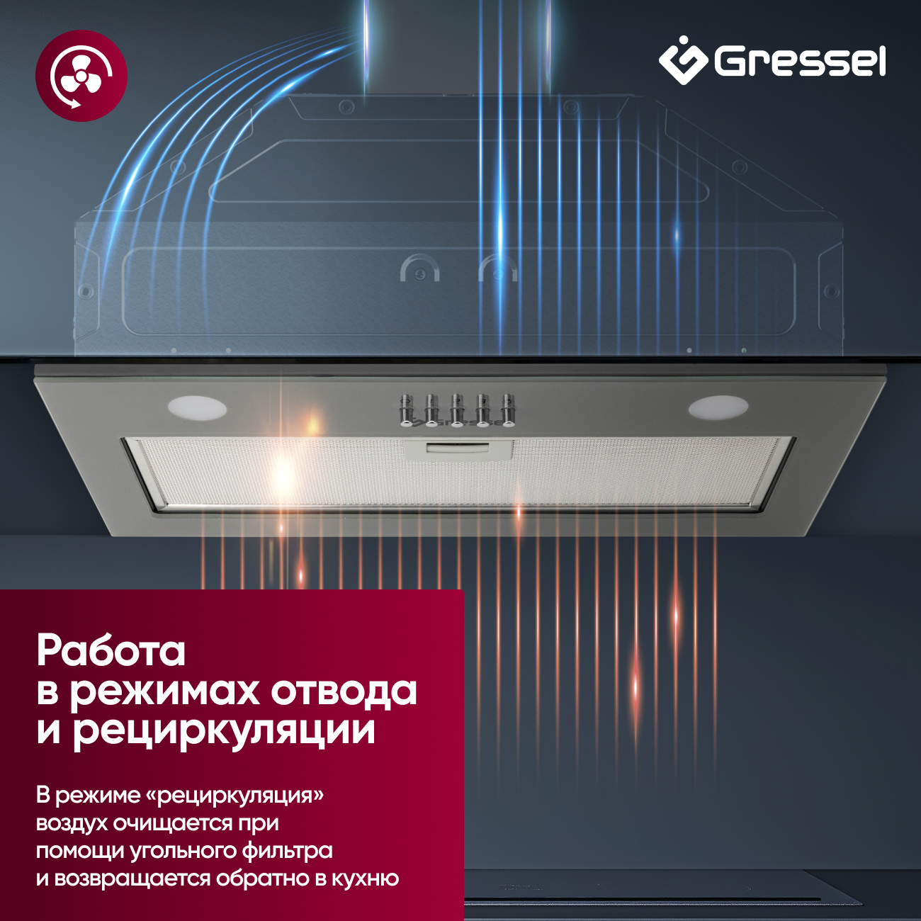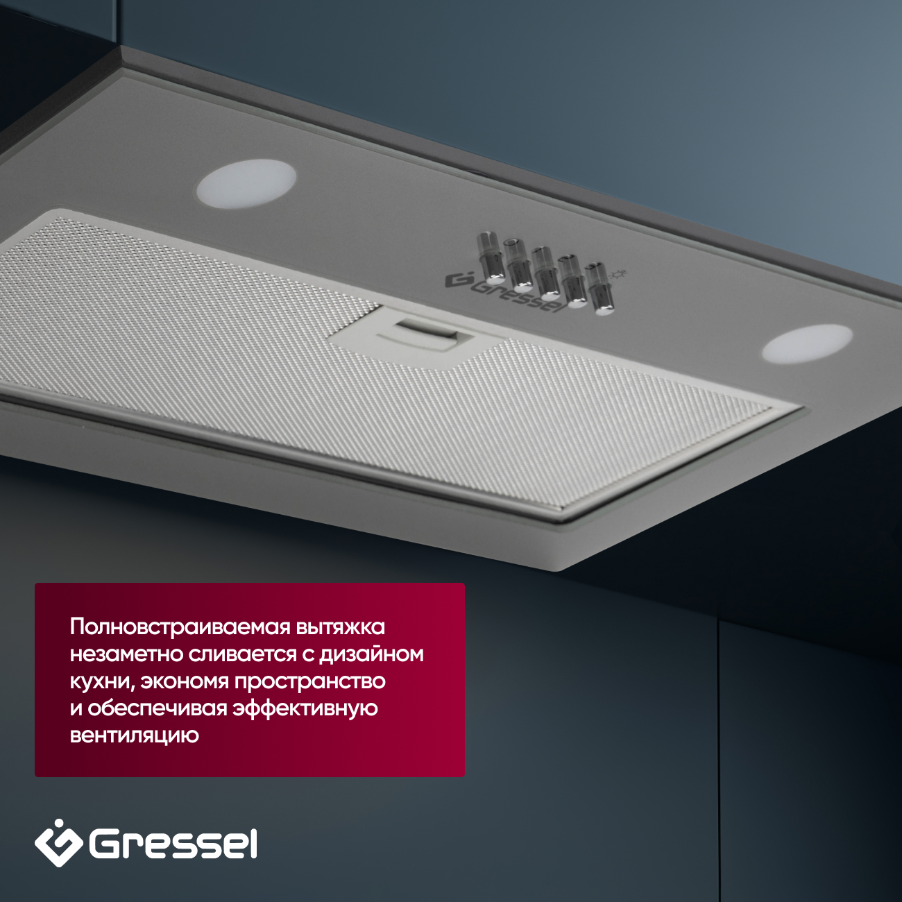 Представляем полновстраиваемую вытяжку Gressel GR52M2 — совершенное решение для современной кухни. Обеспечивает идеальное сочетание функциональности и стиля, благодаря чему вытяжка незаметно интегрируется в интерьер, экономит пространство и эффективно очищает воздух.