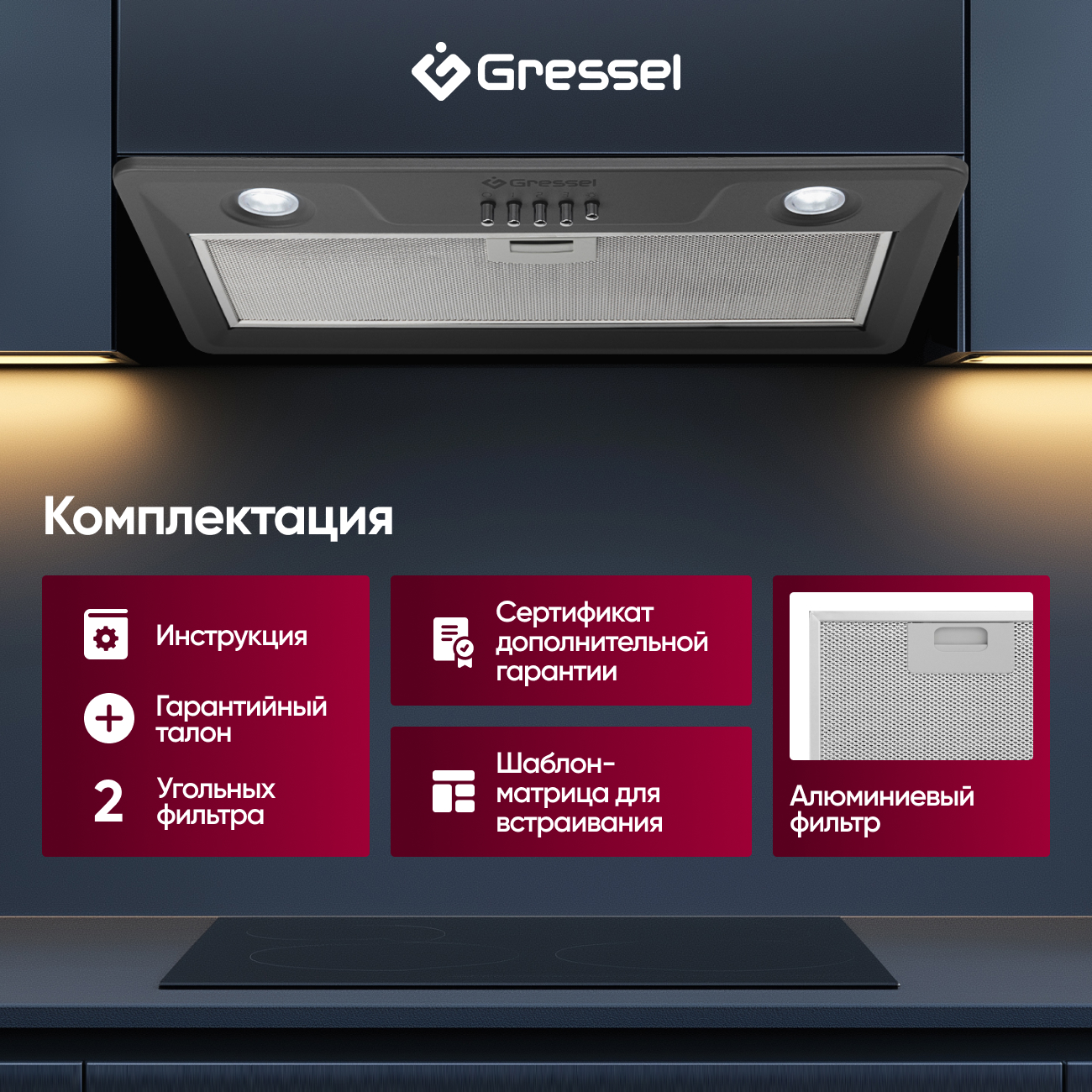 Стильно спроектированная и полностью интегрируемая, Gressel GR52M станет не просто прибором, а частью вашей кухонной мебели, сочетая функциональность и эстетику. Приобретая эту вытяжку, вы также получаете трехлетнюю гарантию, подтверждающую ее долговечность и качество.