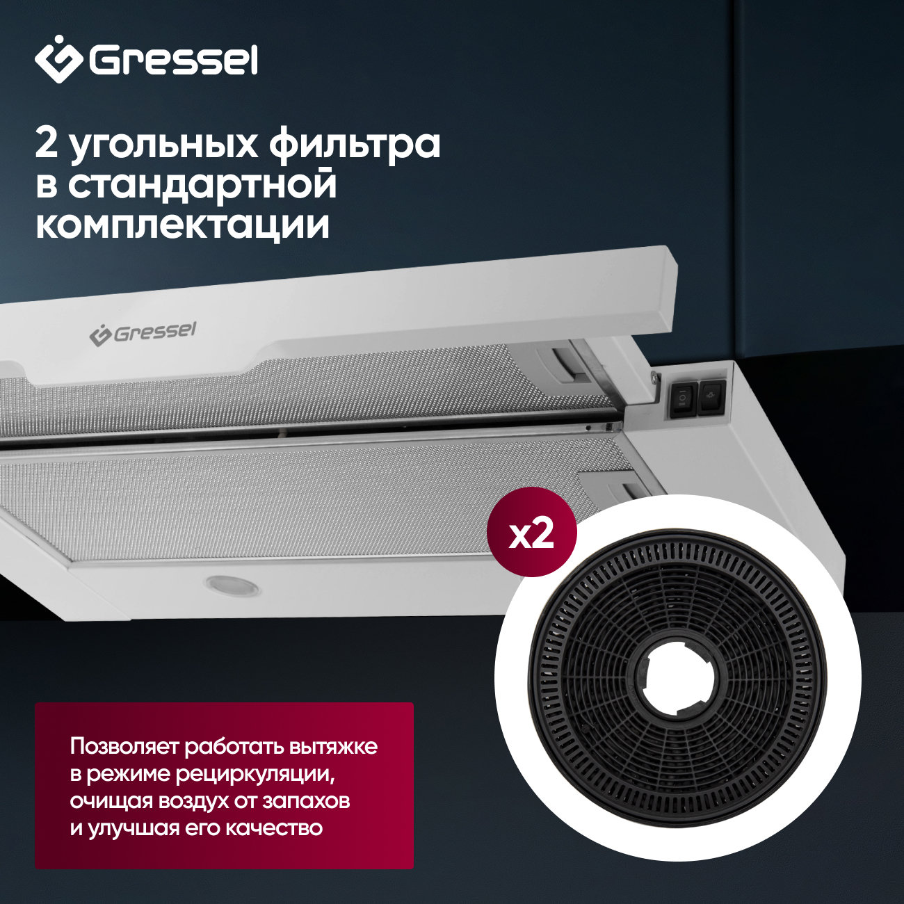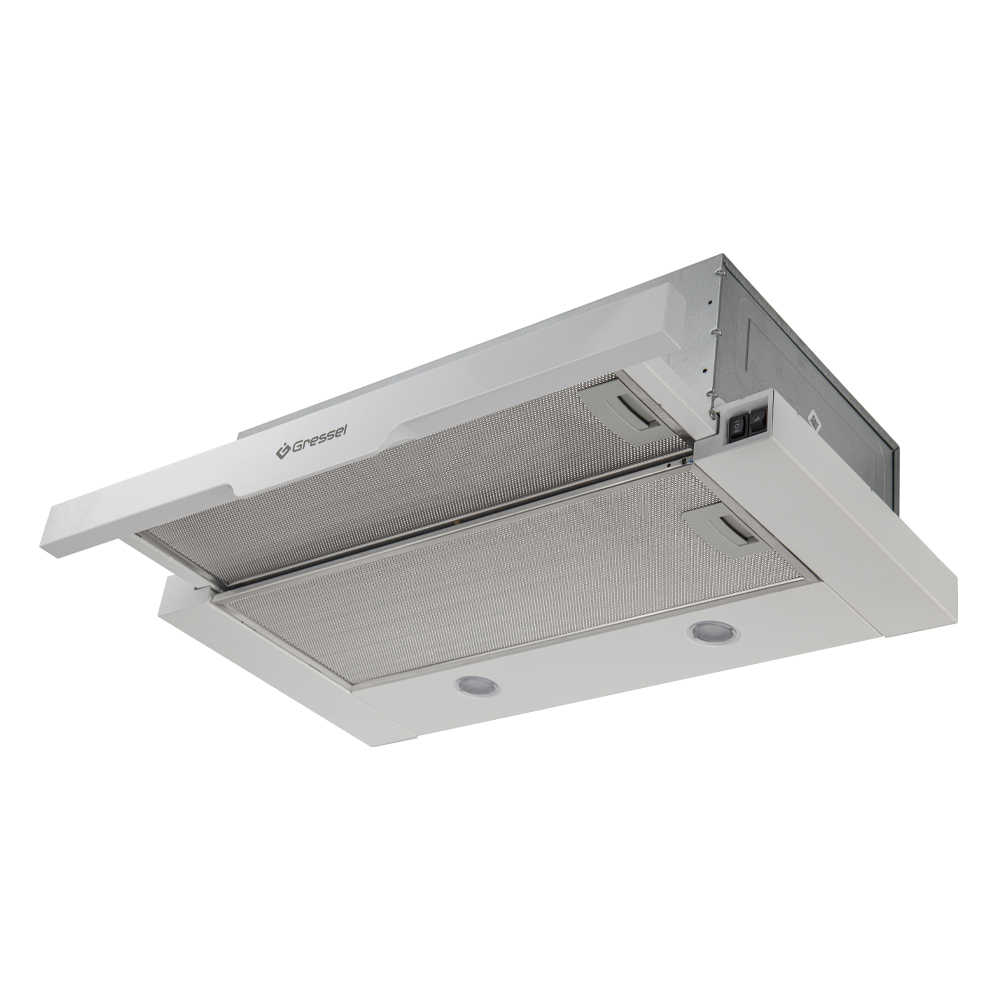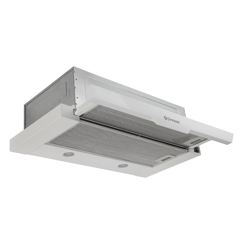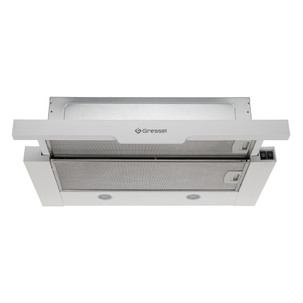 Встраиваемая вытяжка Gressel GR61W 60 см (телескопическая), LED подсветка, 2 скорости, режим рециркуляции, механическое управление, белая