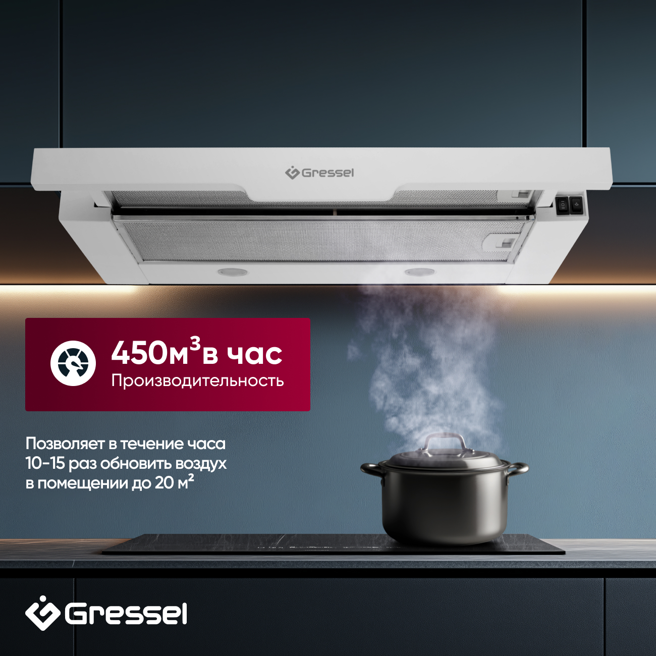 Откройте для себя новый уровень комфорта и функциональности на вашей кухне с телескопической встраиваемой вытяжкой Gressel GR61W. Эта модель предлагает продуманное сочетание стиля, производительности и инновационных технологий, делая ее идеальным выбором для современных кухонь.