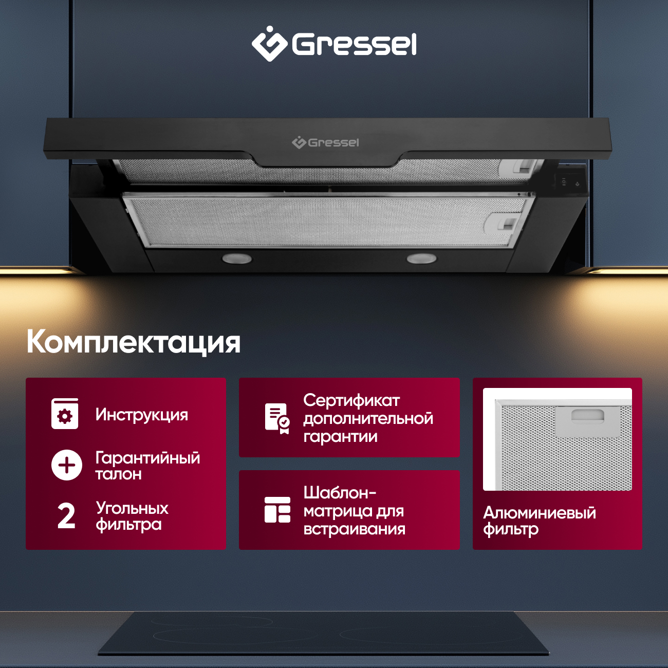 Gressel GR61B1 — это не просто вытяжка, это инвестиция в качество вашей кухонной среды, обеспечивающая чистоту, тишину и комфорт на многие годы благодаря трехлетней гарантии и высоким стандартам качества.